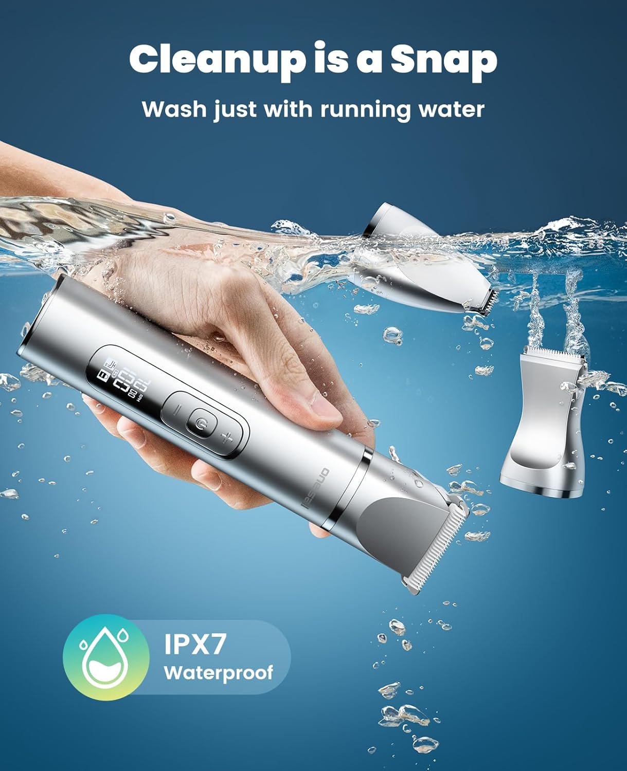 oneisall 4 in 1 Dog Grooming Kit with LCD Display, Dog Hair Trimmer for Paw Nail Grinder, Rechargeable Cordless Low Noise IPX7 Waterproof Pet Clippers