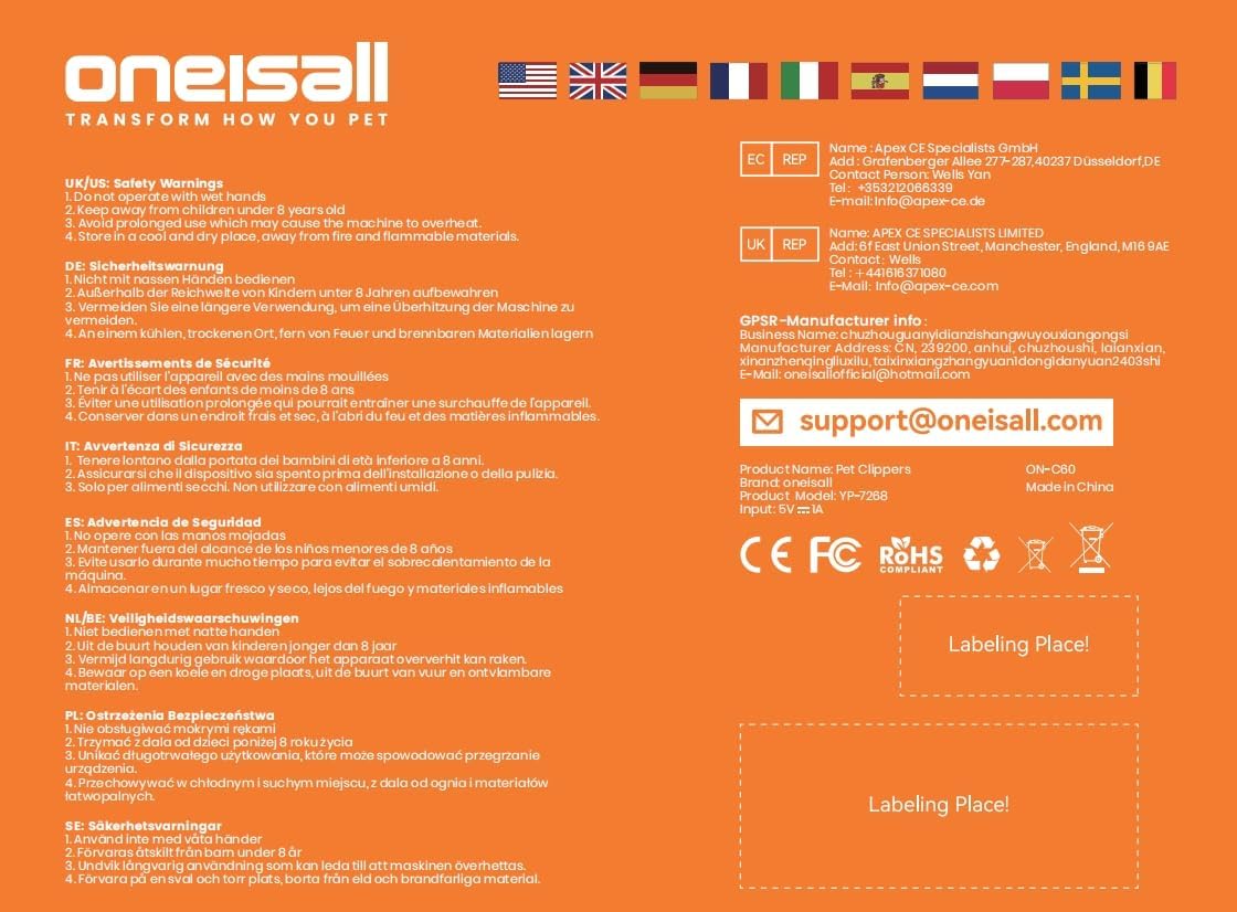 What You Get: oneisall 7268 cat clipper, 4 guide guards (3mm/ 6mm/ 9mm/ 12mm), cleaning brush, comb, scissor, usb charger. Includes everything you need to trim your pet’s hair