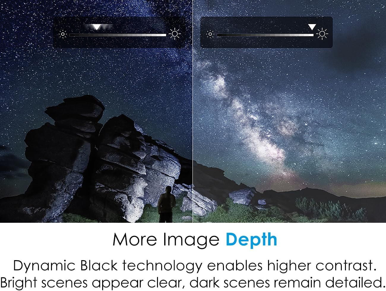 MORE IMAGE DEPTH: Dynamic Black technology provides more depth to the image by smoothing lamp output to create a high contrast ratio (500, 000: 1); bright scenes appear clear while dark scenes remain detailed