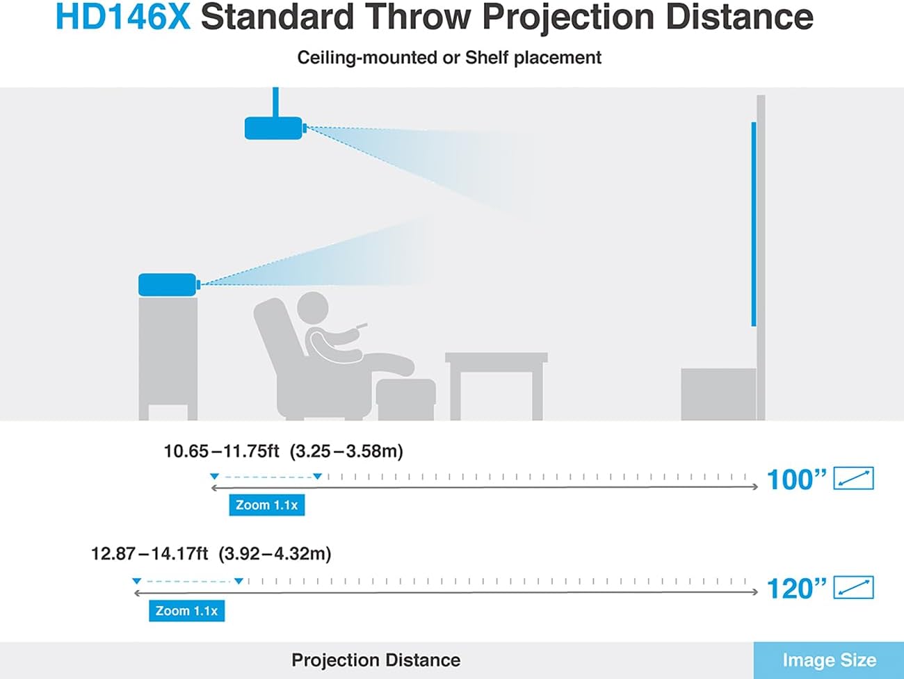 Embrace the huge-screen cinematic experience with the affordable 3,600 lumens Optoma HD146X 1080p home theater projector. The excellent color reproduction and high-quality 25, 000: 1 contrast ratio ensures images up to 301-inches look incredible for unmatched immersion for movies and gaming. Enhanced Gaming Mode delivers lightning-fast input response times of 16ms, perfect for fastpaced and competitive console or PC gaming. Game Display Mode provides a visual advantage by boosting shadows and dark scenes for greater visibility of impending obstacles. HDMI-Link technology enables control of the projector and connected devices using a single remote, all via the HDMI connection. Up to 15,000- hour lamp life delivers many years of use with minimal maintenance when using Dynamic mode.