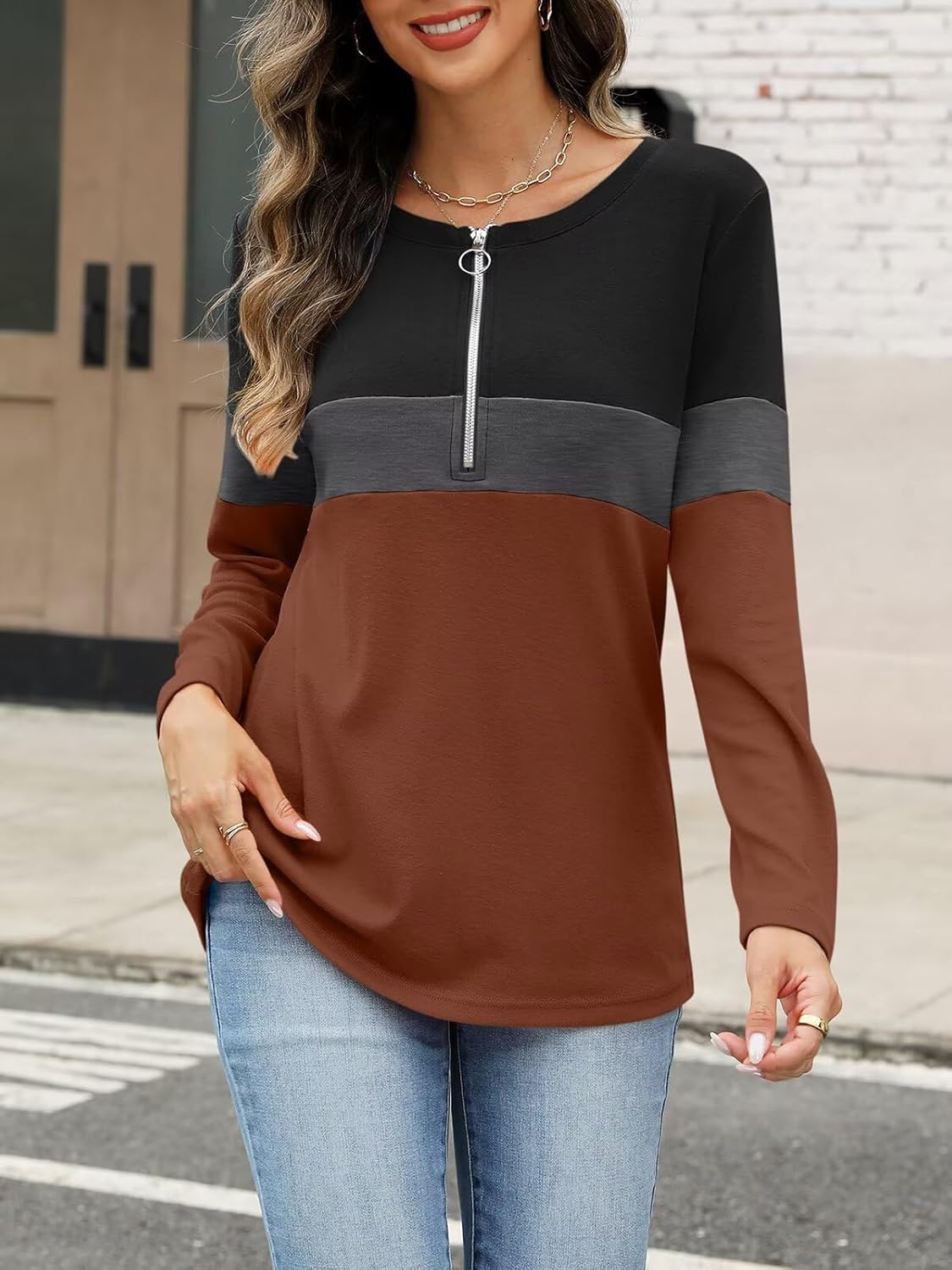 Match:fall shirts for women,womens tops dressy casual.Easy to pair with your pants,jeans,skinny leggings for a trendy look,Innovative color block long sleeves with a zipper design let you lead the fashion trend.