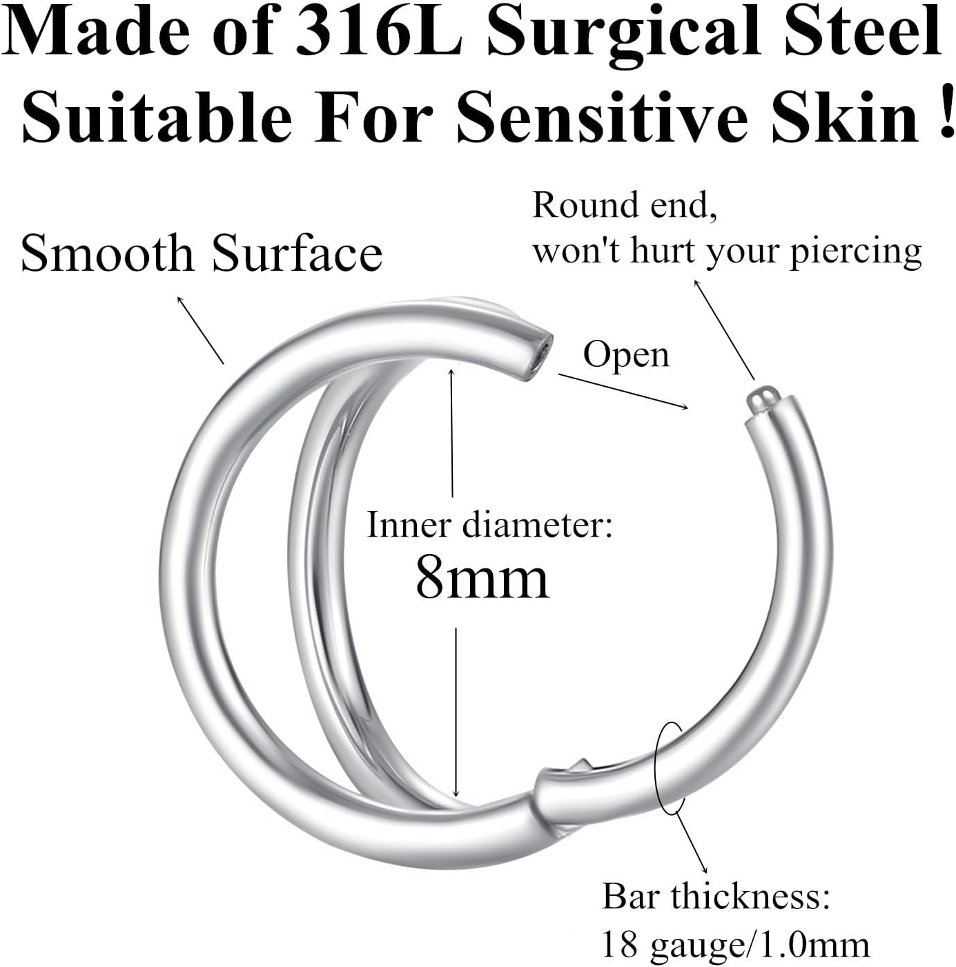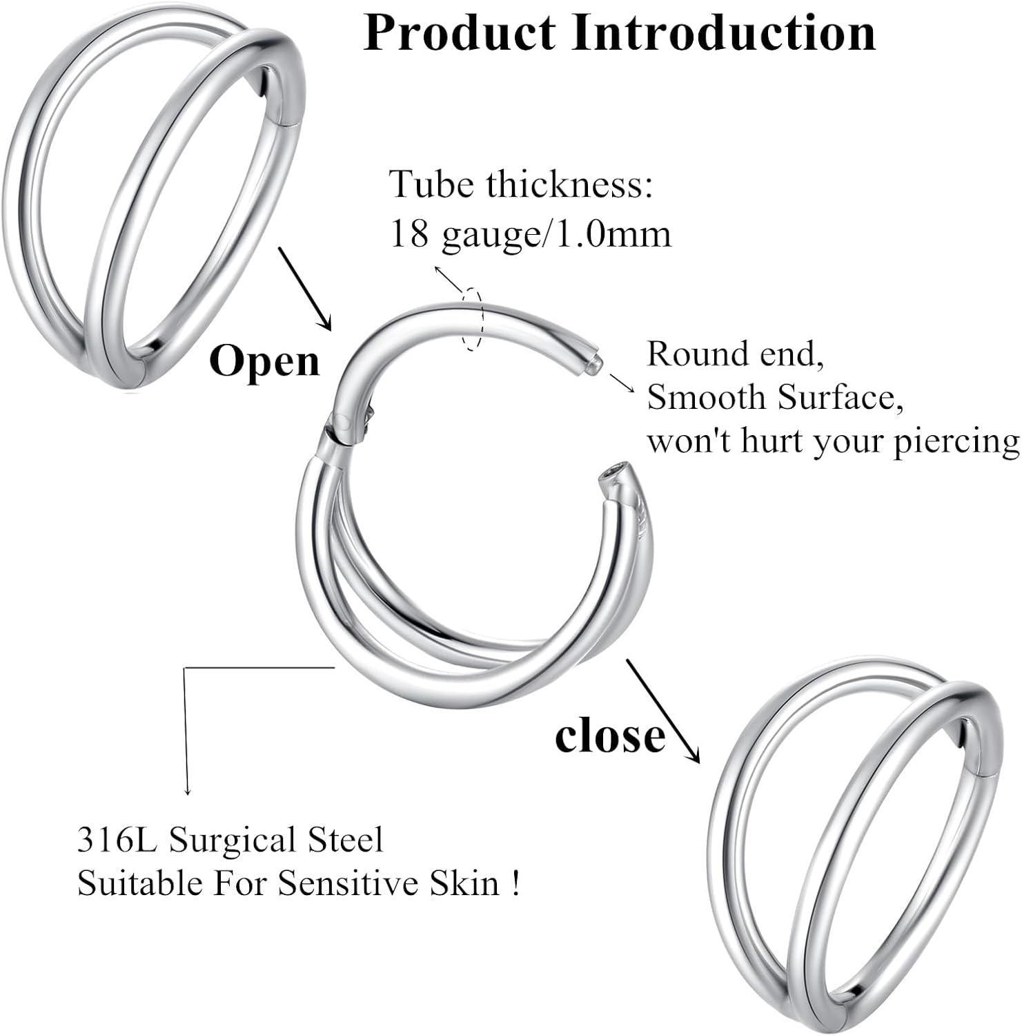 ORANGELOVE Double Hoop Nose Ring 18G 16G 316L Surgical Steel Cartilage Earring Septum Jewelry Seamless Hinged Clicker Segment Ring Conch Daith Tragus Helix Rook Piercing Earring Lip Ring