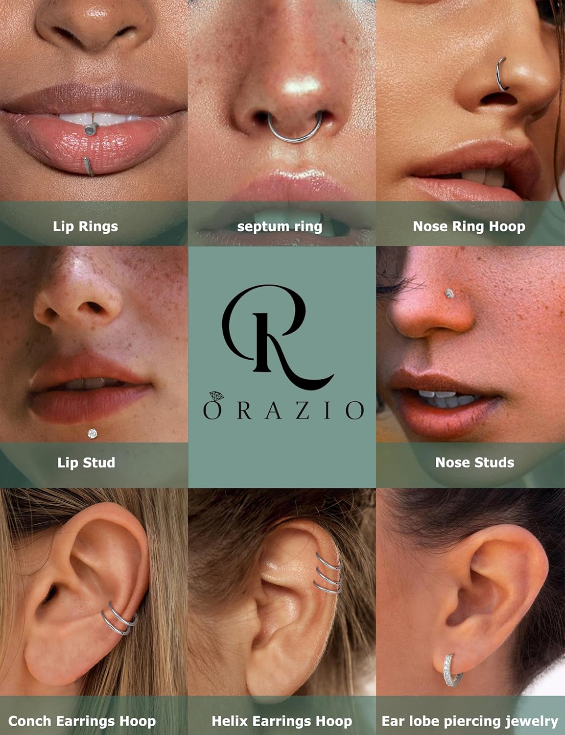 ORAZIO Nose Rings for Women – 14K Gold Filled Hypoallergenic Surgical Steel Nose Ring Hoops 18G/20G/22G Small Cute CZ Screw L Shaped Nose Studs Piercings Jewelry for Women Men 12Pcs