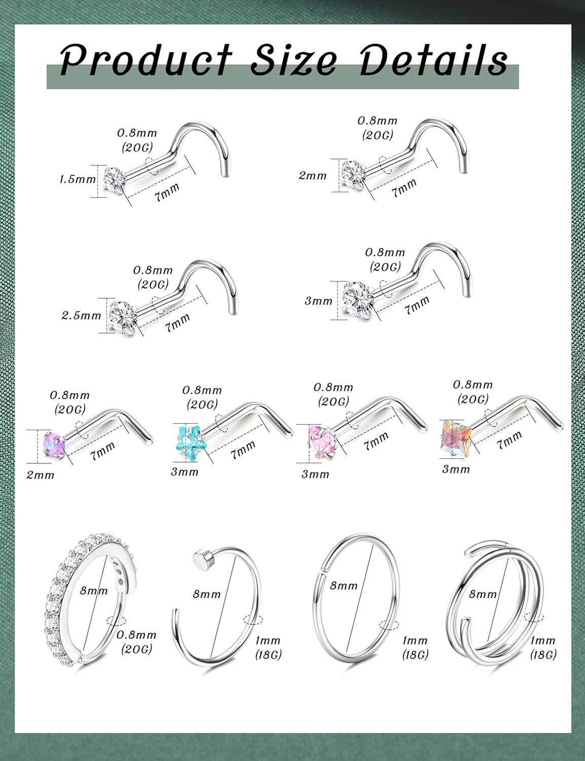 Customers find the nose rings cute and well-made, with good value for money. They appreciate the variety of options available. The size receives mixed feedback, with some customers finding them nice while others say the CZ stones are too small.