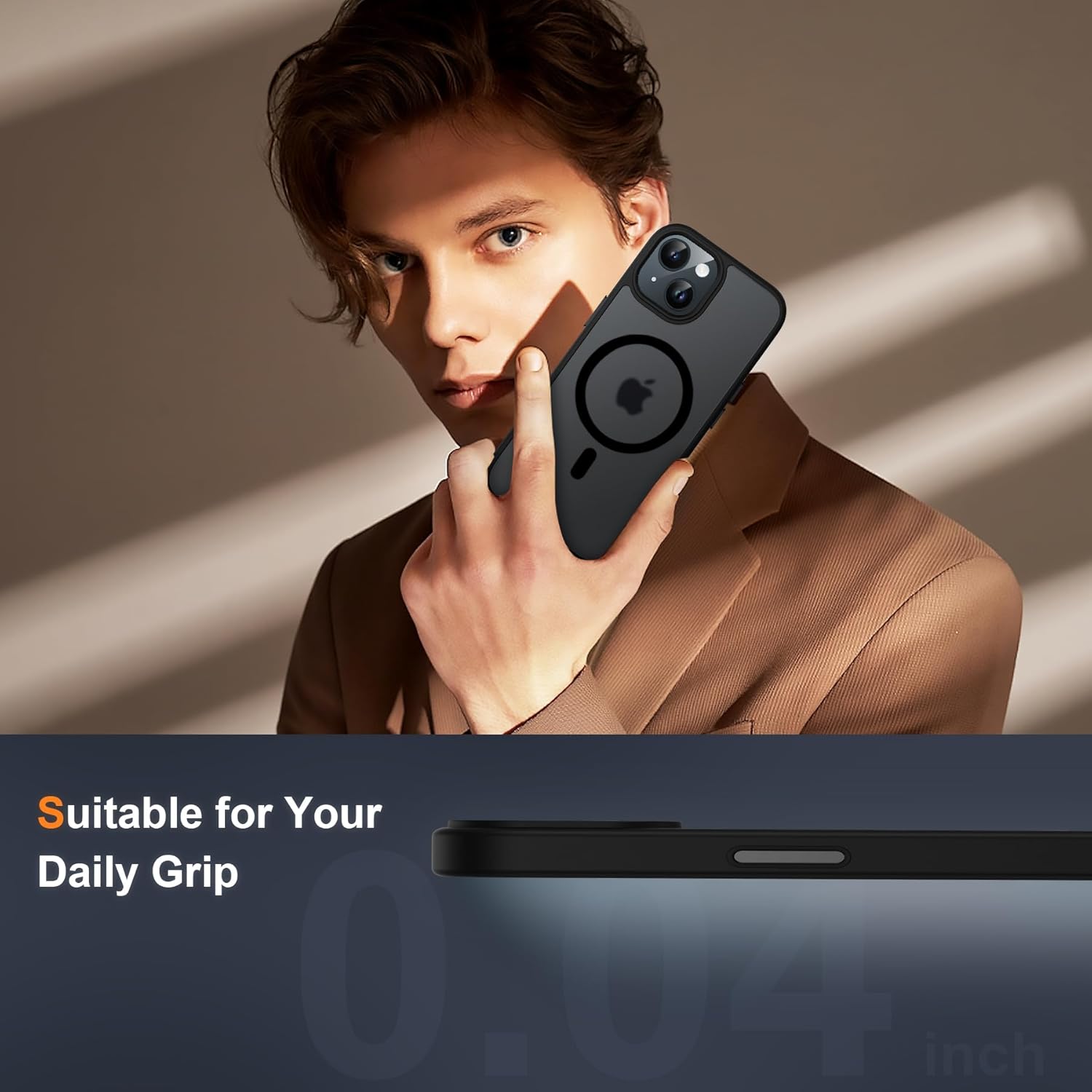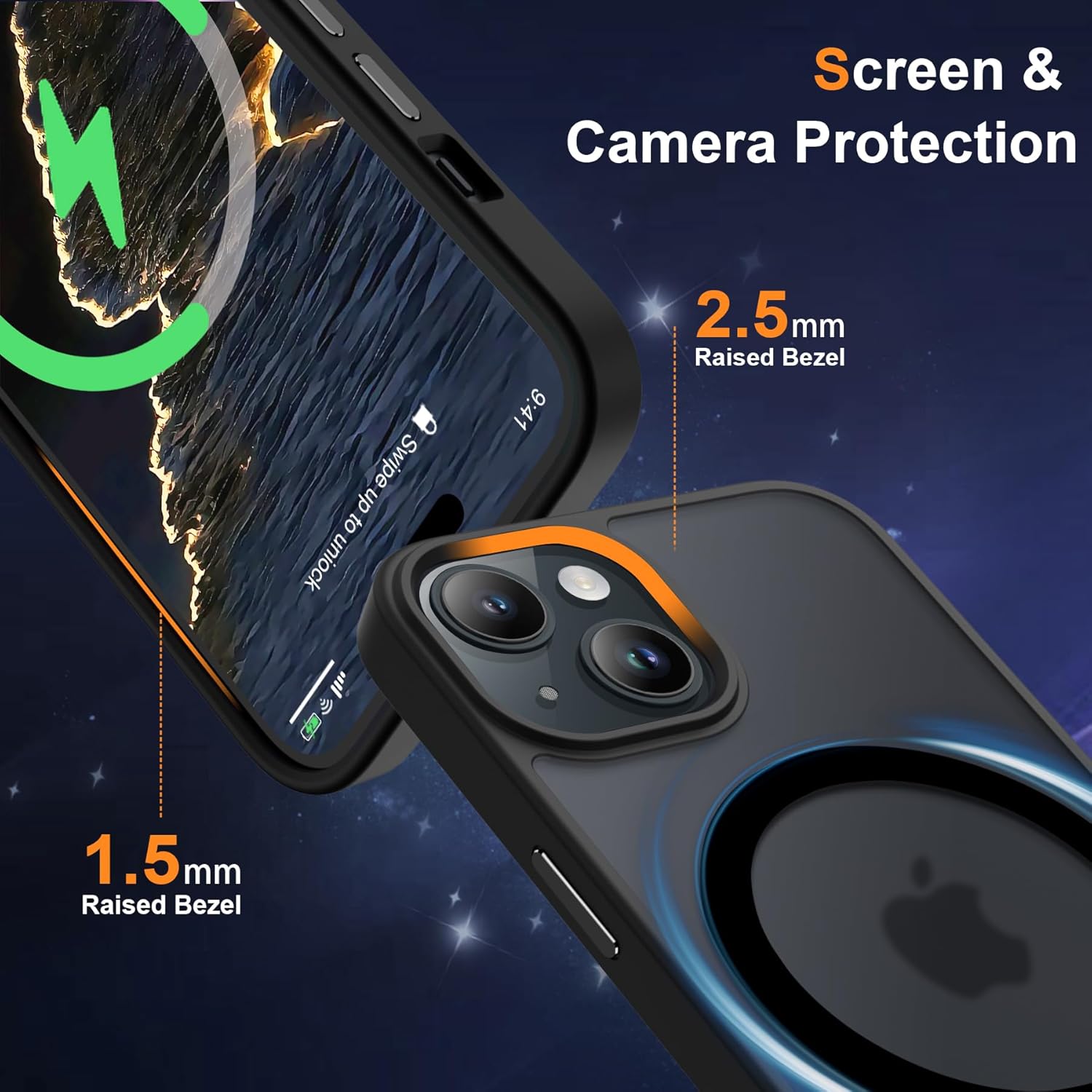 ORETECH Magnetic for iPhone 15 Case, [Compatible with MagSafe][2 Pcs Screen Protectors][15 FT Drop Protection] Frosted Translucent Back, Shockproof, Anti-Scratch Phone Case for iPhone 15, Black