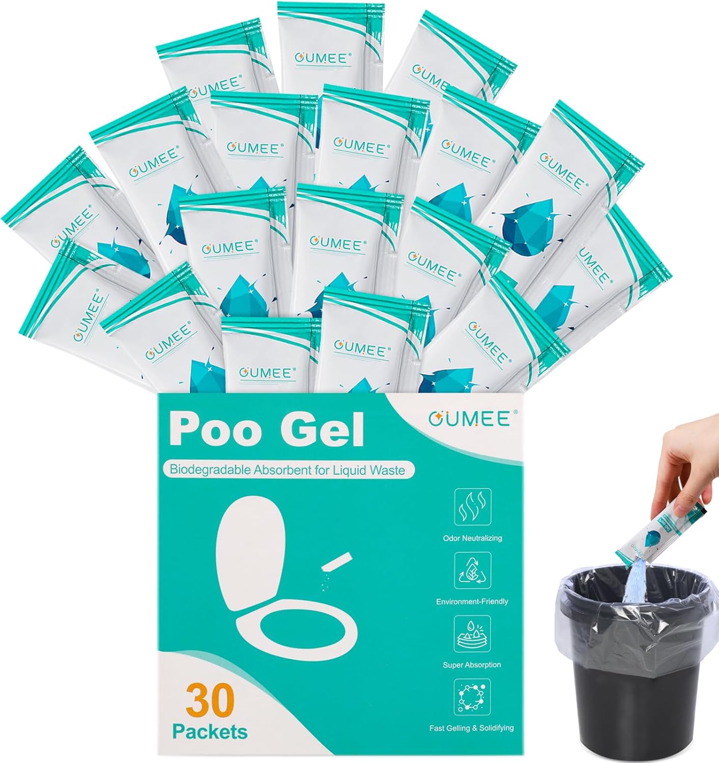 OUMEE 30 PACK Poo Gel for Portable Toilet, Camping Toilet Powder for Potty Bags, Eco Absorbent Gel, Portable Toilet Gel Packets for Outdoor Recreation Camping Supplies (30)