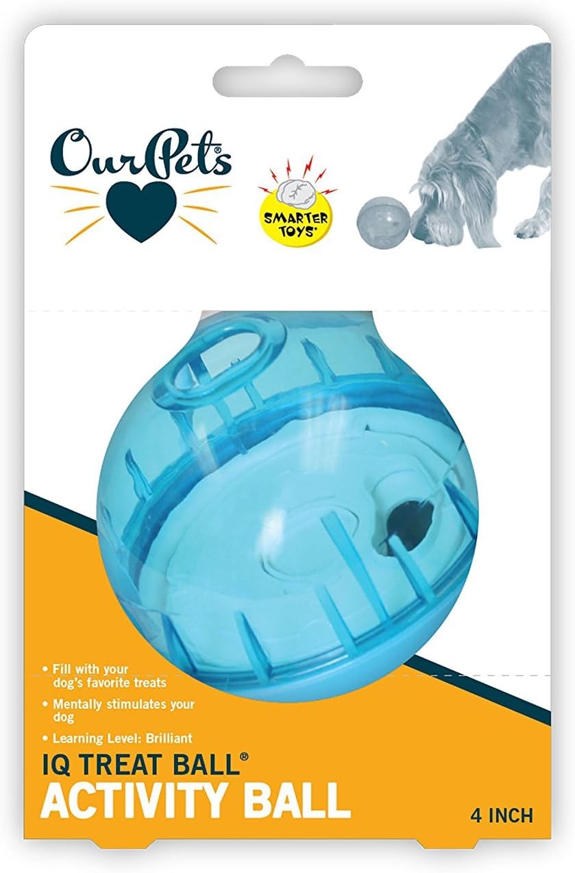 OurPets IQ Treat Ball Interactive Food Dispensing Dog Toy, 4 Inches (2 Pack)(colors may vary)