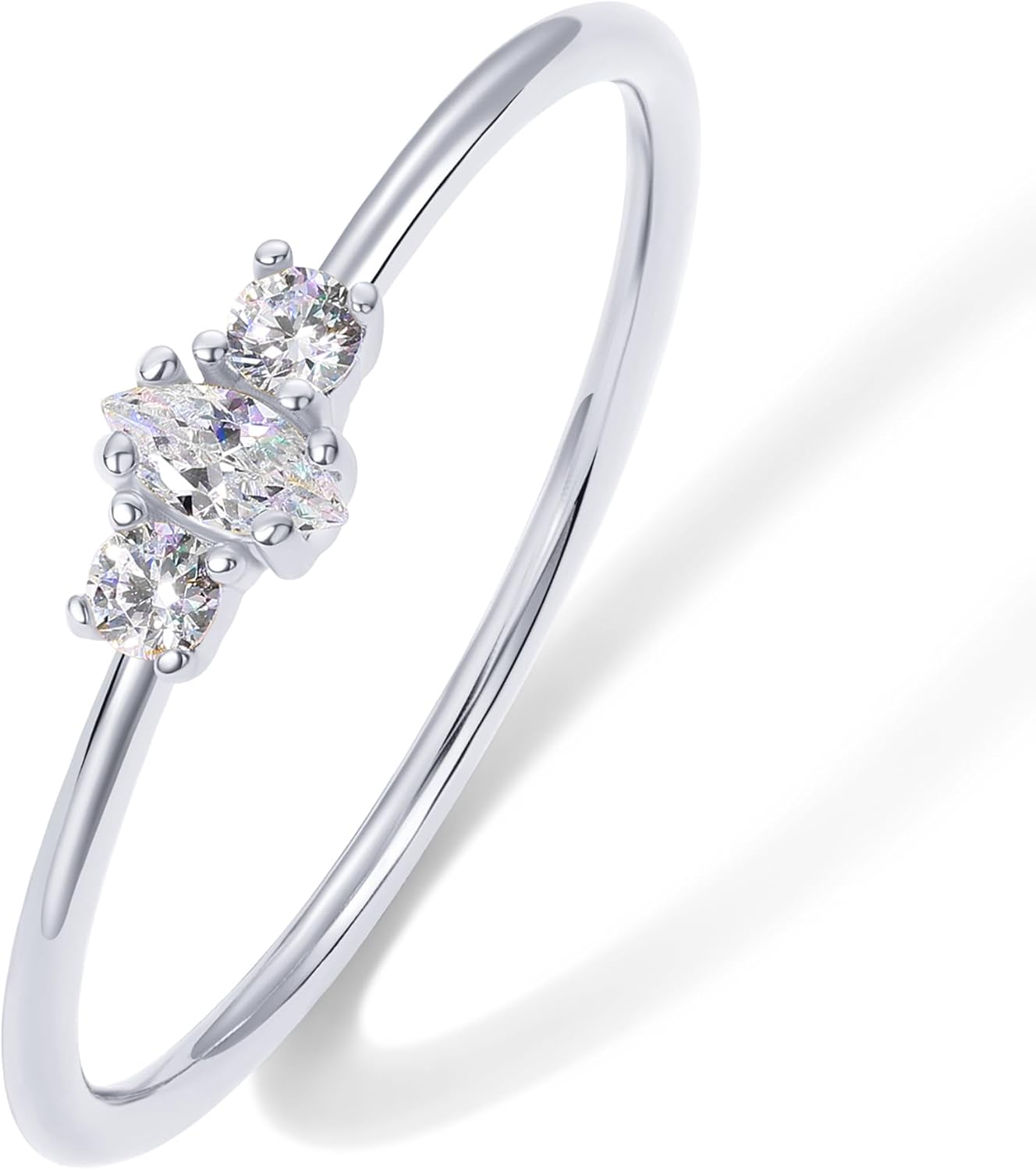 PAVOI 18K Gold Plated Marquise Round Mini Cubic Zirconia Stackable Rings for Women | Dainty Stacking Thin Band for Women