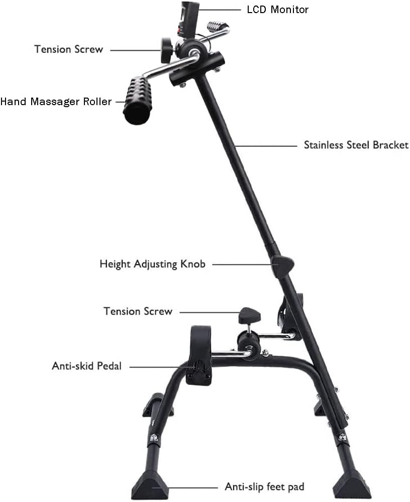 Pedal Exerciser Bike Hand Arm Leg and Knee Peddler Adjustable Fitness Equipment for Seniors, Elderly Home Pedal Exercise Bike for Total Body, with Gift Box & Monitor