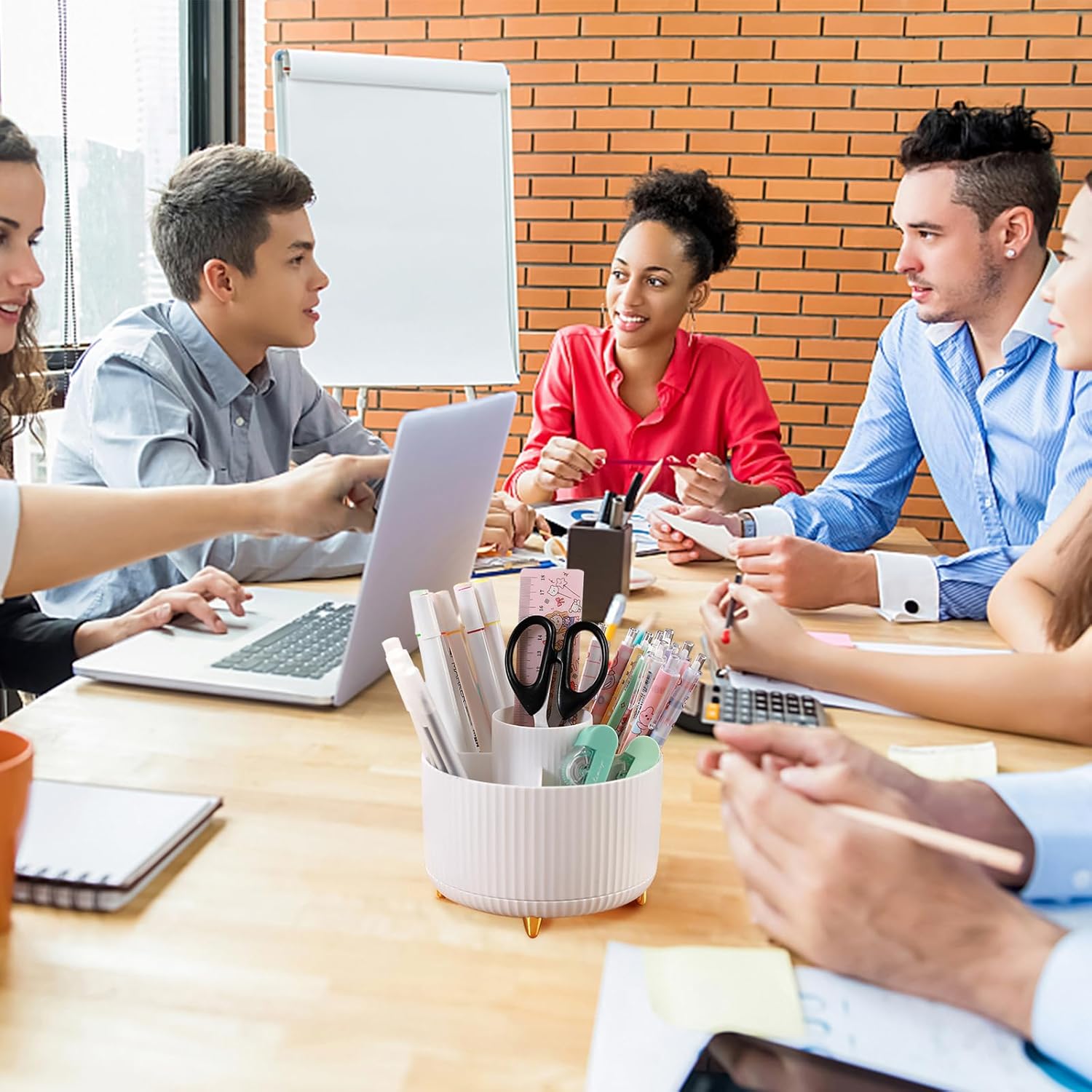 Pencil Holder For Desk,5 Slots 360°Degree Rotating Desk Organizers And Accessories,Desktop Storage Stationery Supplies Organizer, Cute Pencil Cup Pot For Office, School, Home (B-White)