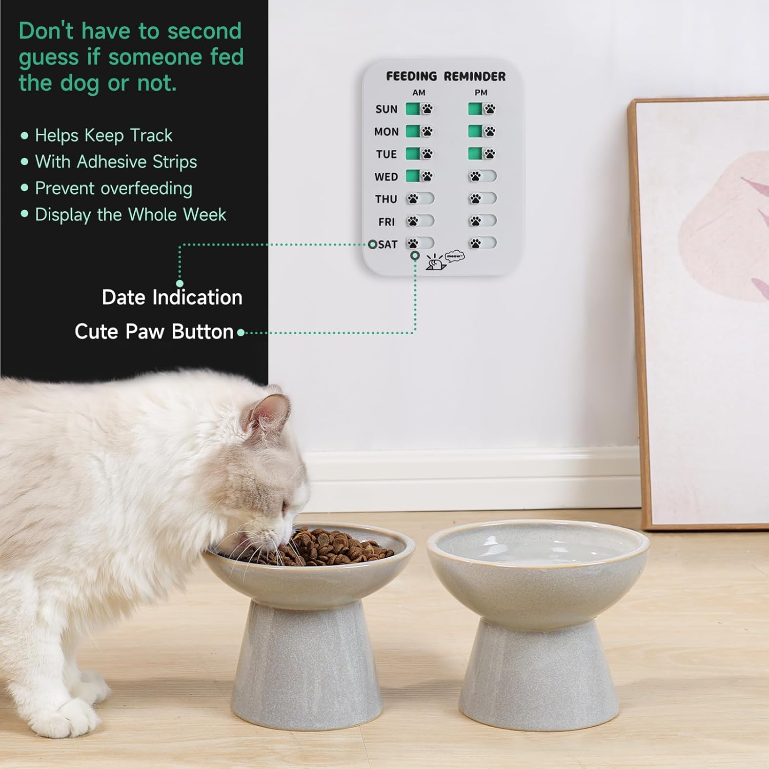 Enhance Your Home Decor — In addition to its functional role, our tracking logo adds a touch of charm to your home. The sleek and modern design complements any interior, seamlessly blending into your décor while serving as a reminder to keep your pet’s feeding routine in check.