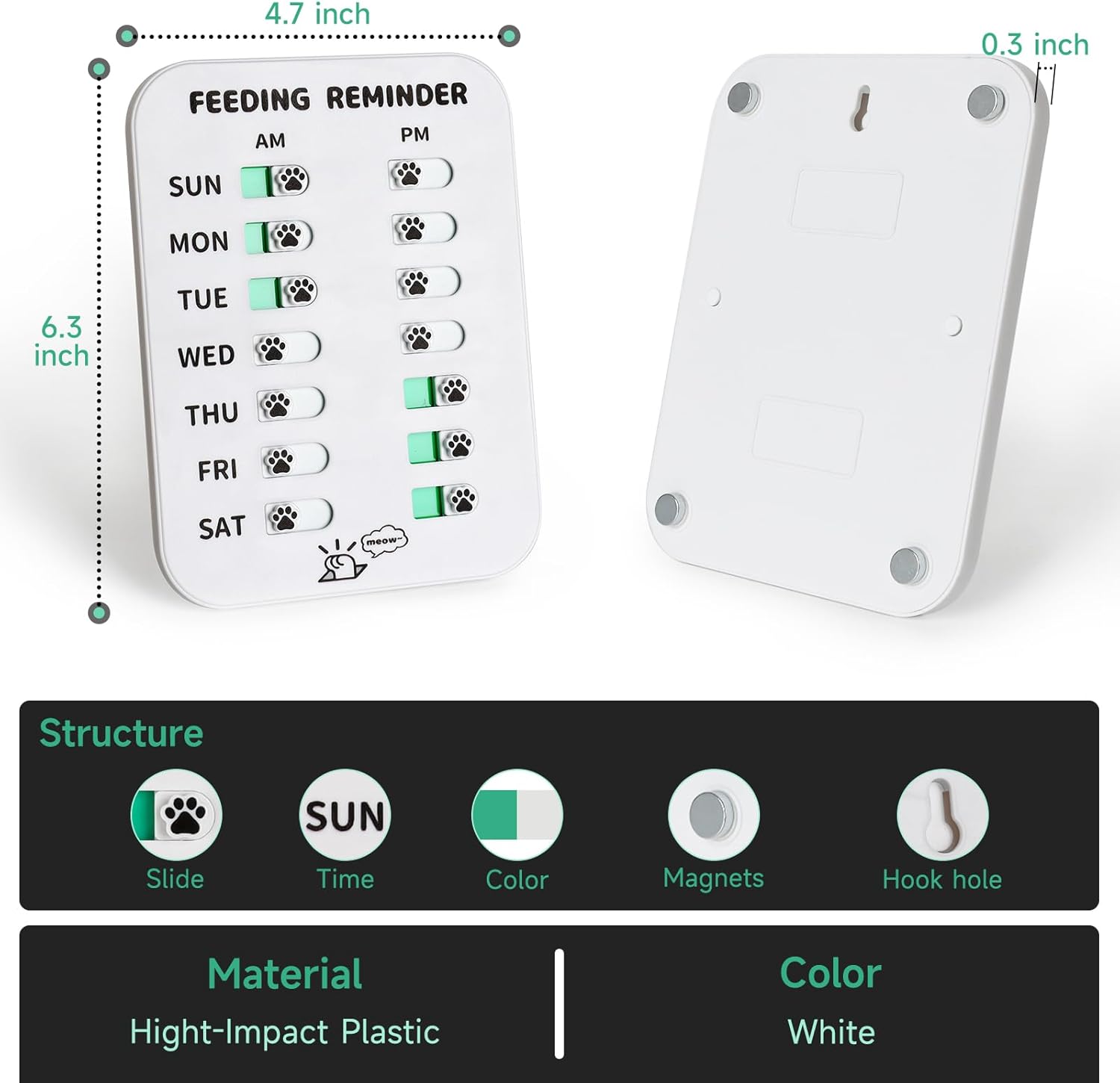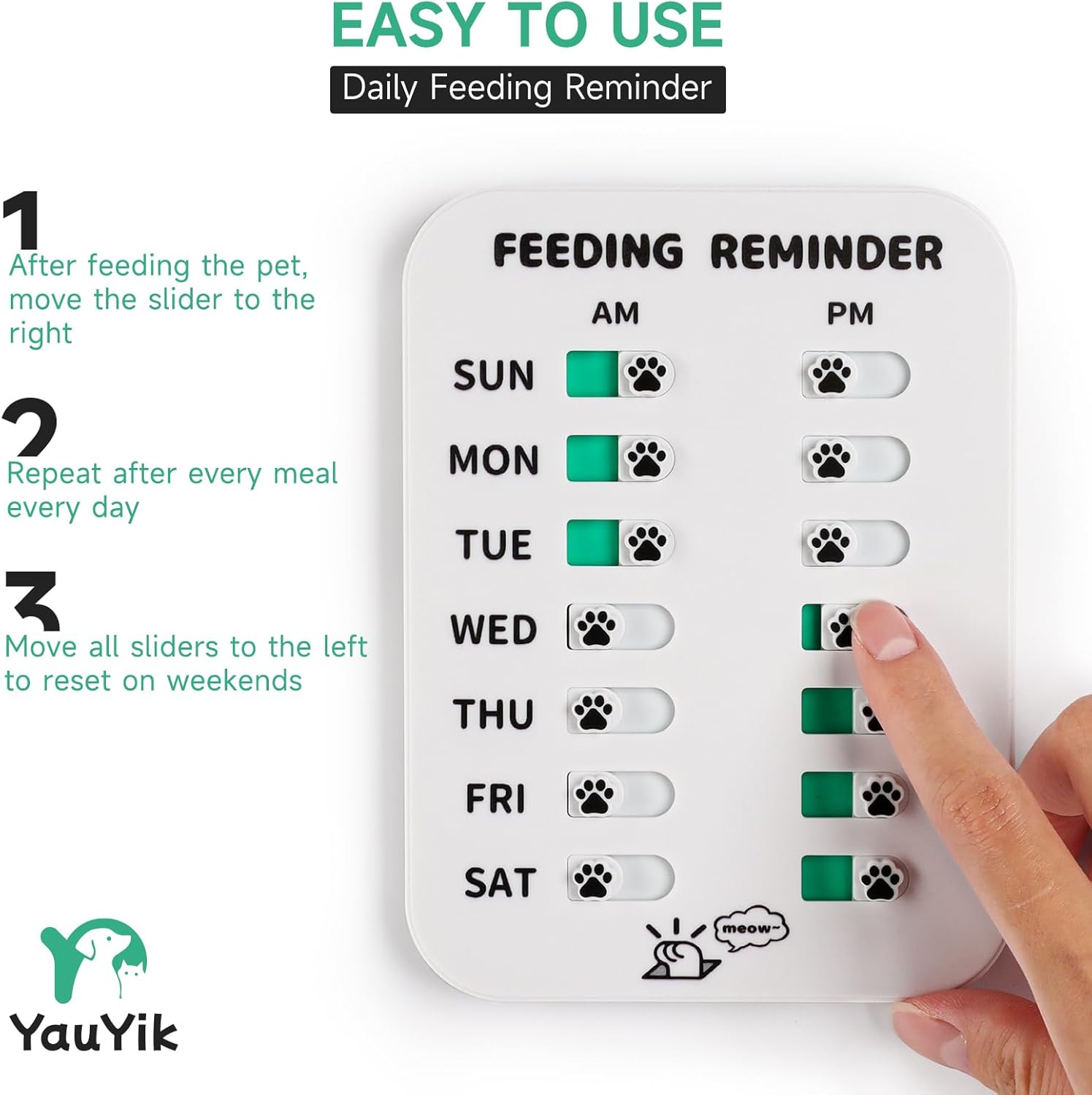 No more asking “Who feed the pet?” – This pet food reminder has am/pm time points to help you track your pet’s feeding schedule. When you feed your pet, just move your finger and move the very cute dog paw-shaped slider to the green. This is a must-have handy addition for dog and cat owners, especially busy pet owners.