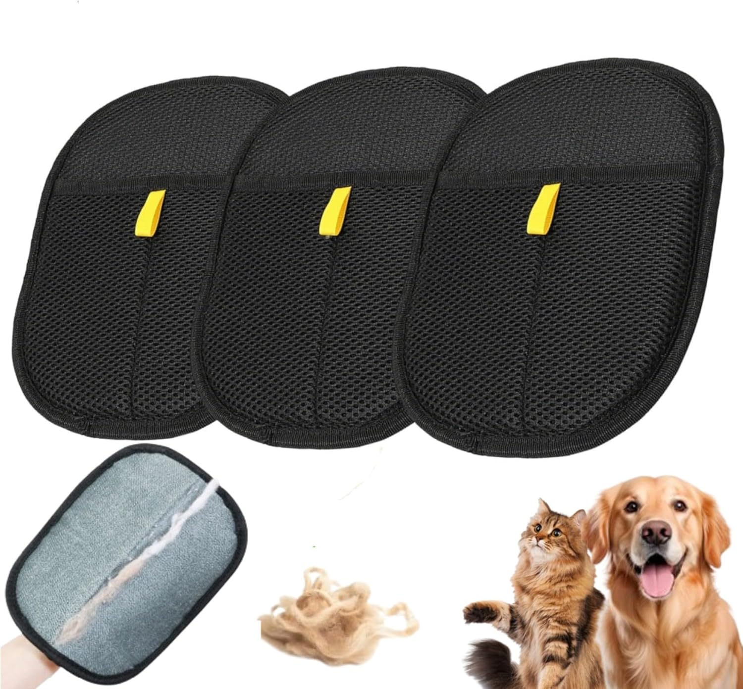 Pet Hair Removal Glove, 3PCS Pet Hair Remover Electrostatic Gloves for Cats & Dogs, Double Sided Reusable Pet Grooming Hair Removal Glove for Washing, Deshedding Furniture, Car, Couch, Carpet