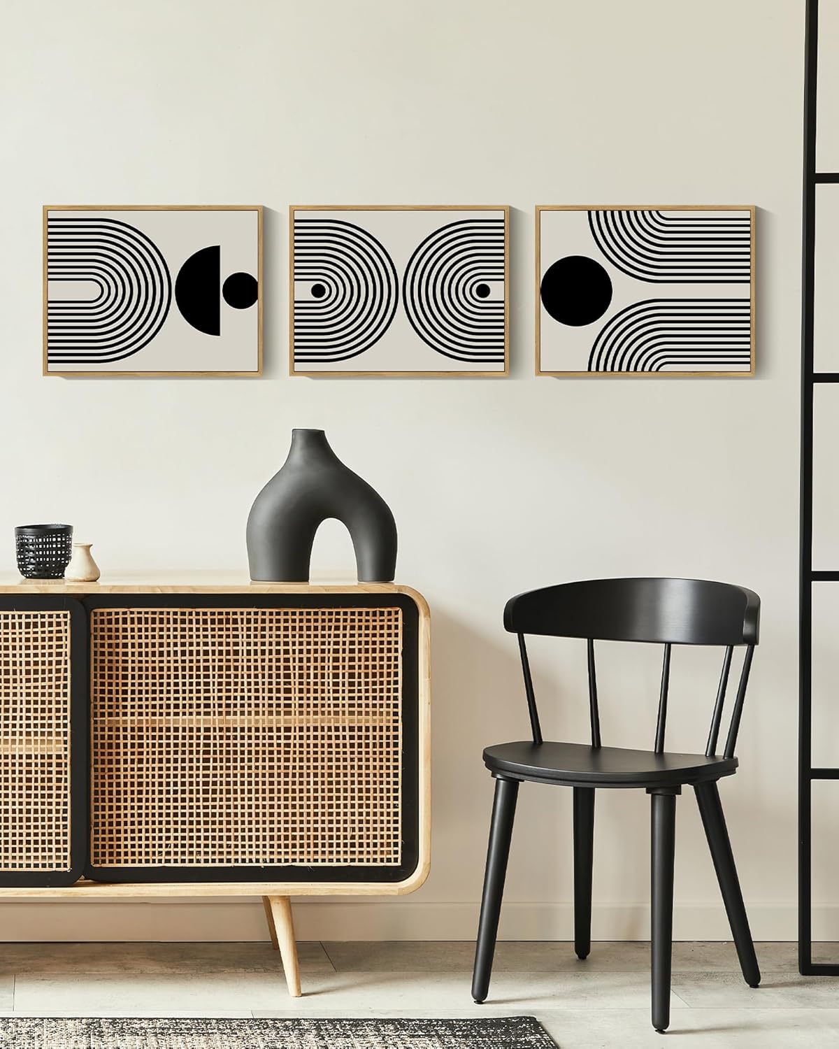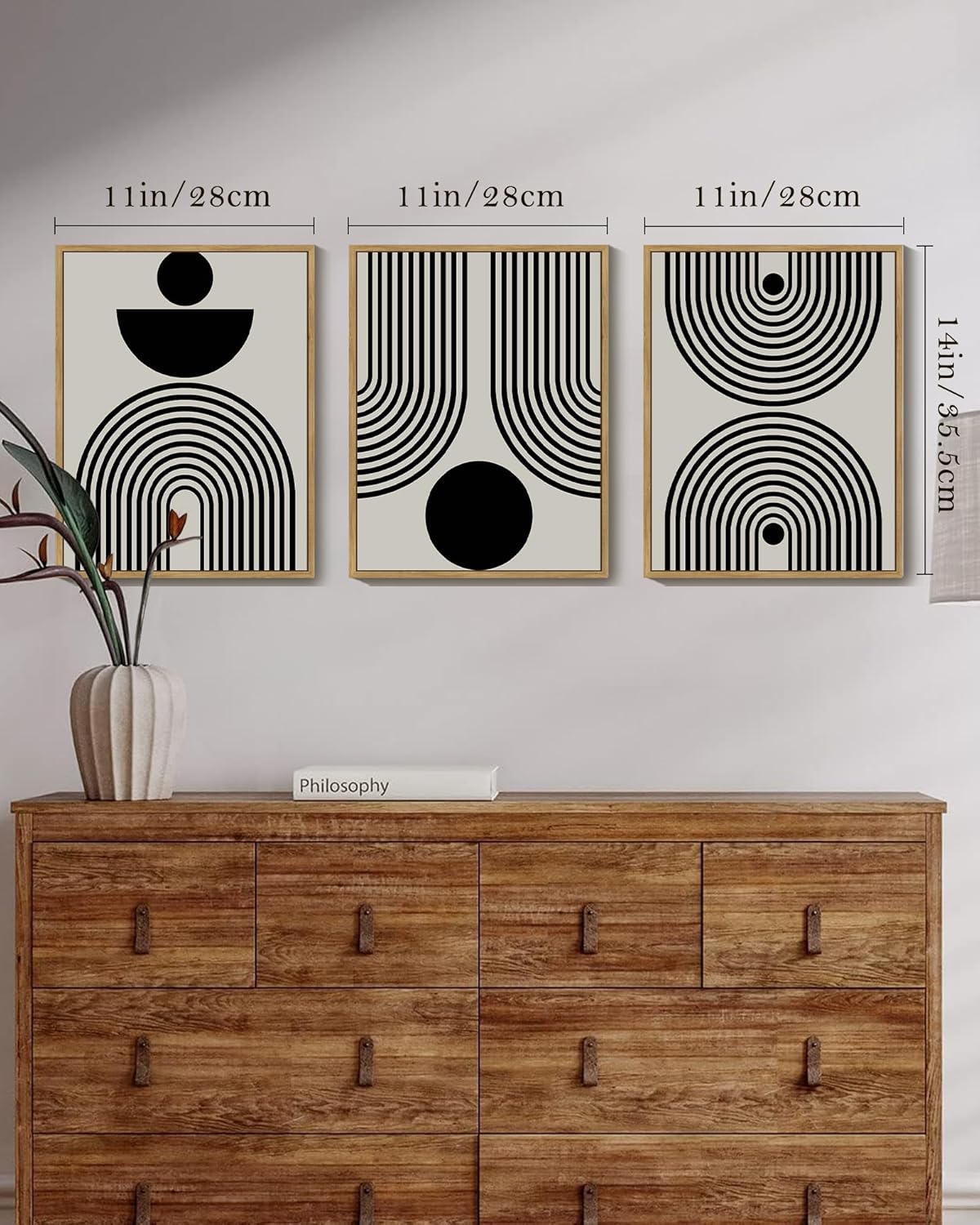Easy to Hang – Equipped with pre-installed hooks, the black boho wall art is easy to hang and position. Set of 3, each panel is 11″ x 14″.