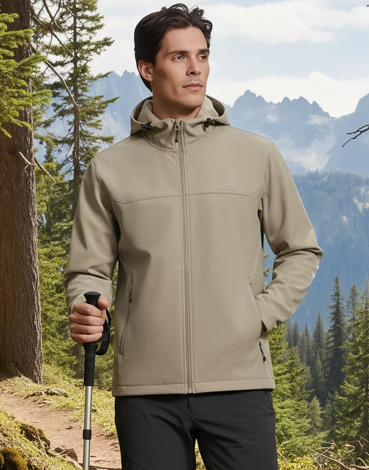 Pioneer Camp Men’s Lightweight Softshell Waterproof Jacket Hooded Fleece Lined Windbreaker Rain Shell Jackets Hiking Outdoor