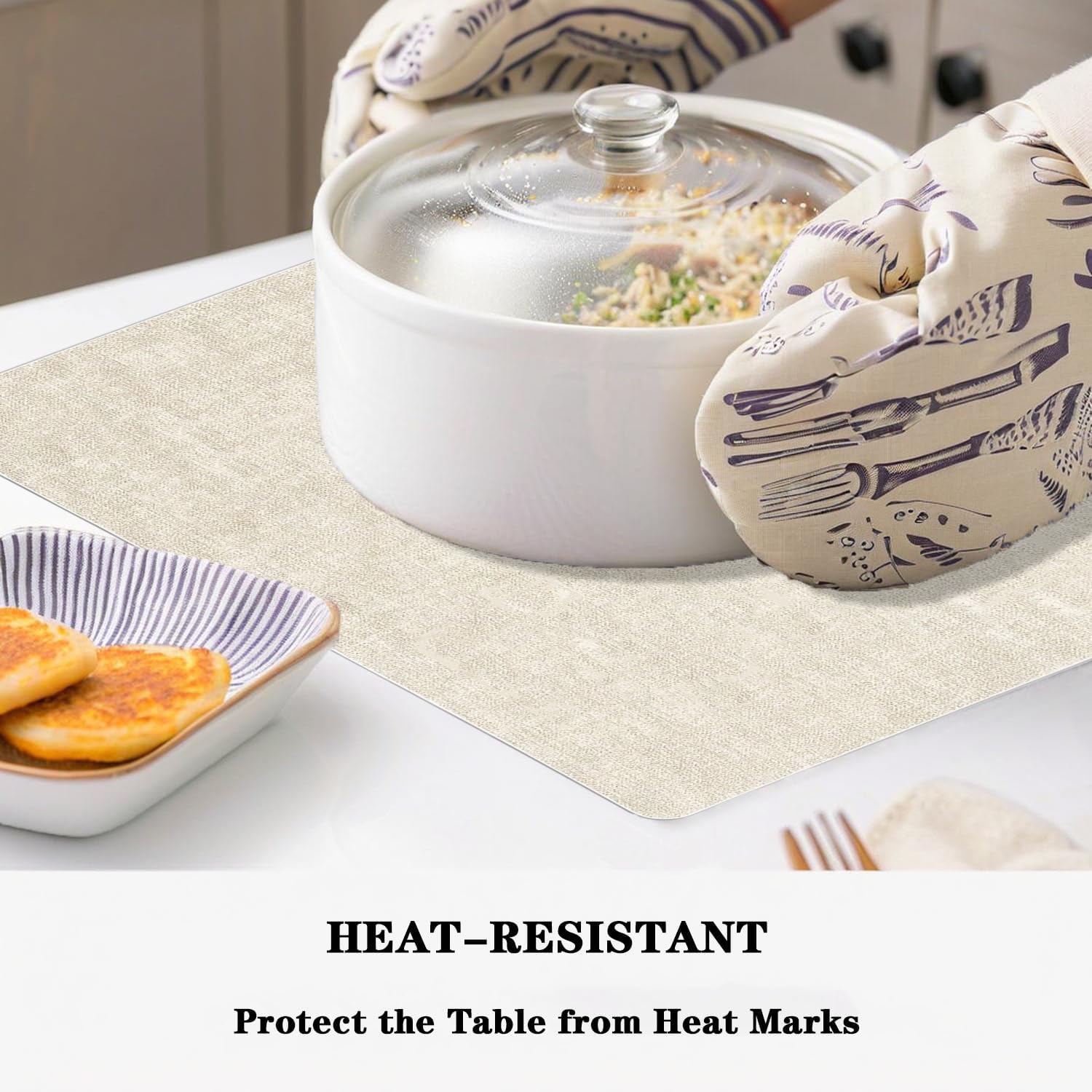 Heat Resistance: UP TO 212 °F (100 °C): These quality dining table place mats are with 2mm thickness to protect your dining table from white heat marks. Each is sealed with a durable coating that is both stain and heat resistant to 212 °F