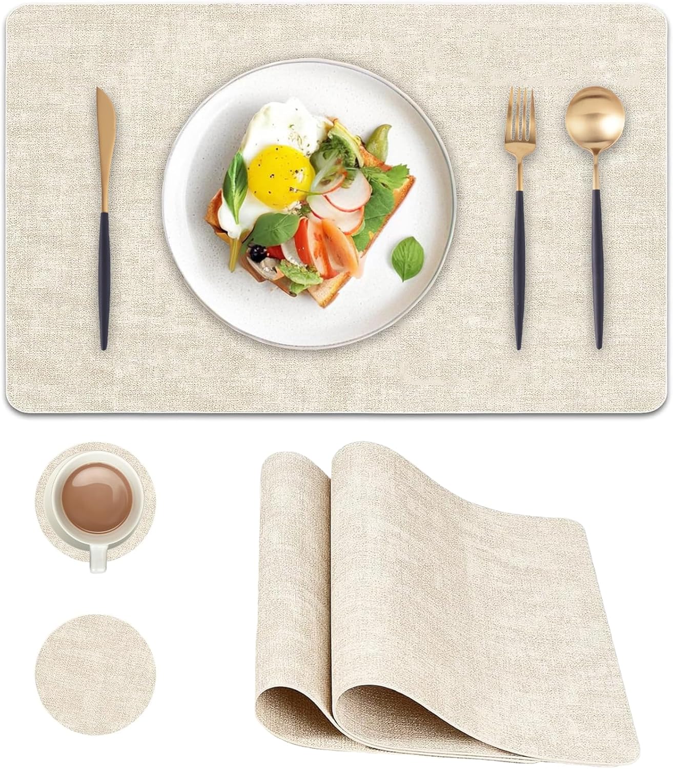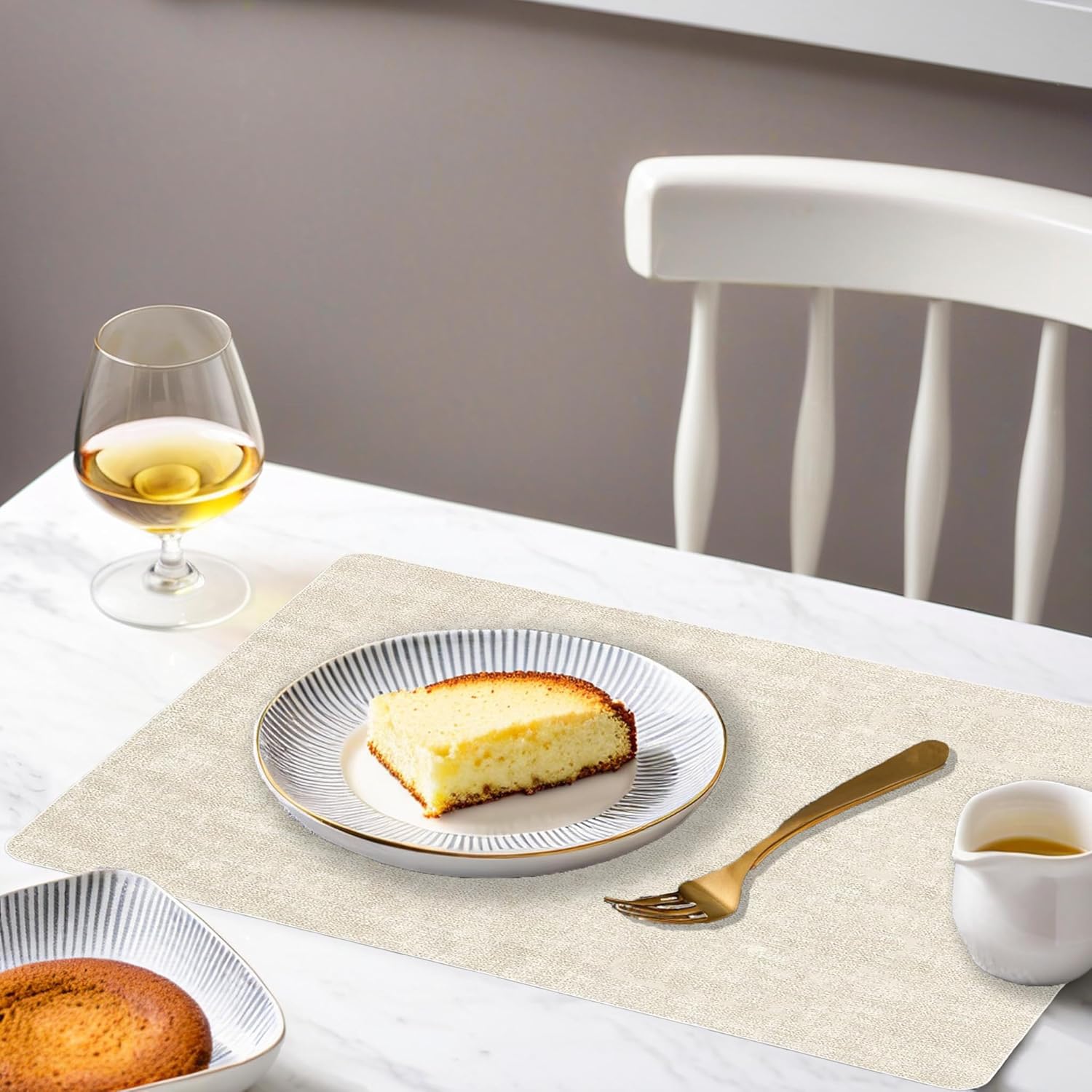 Placemats Set of 2 – Faux Leather Heat Waterproof Oil-Proof Wipeable PU Place Mats, Resistant Reversible Table Mats for Kitchen, Dining, Outdoor 17″ x 12″ (Beige, Set of 2)