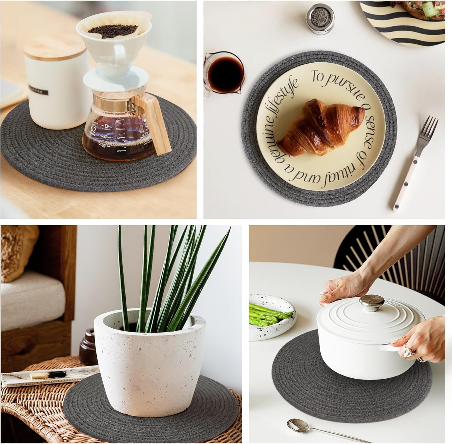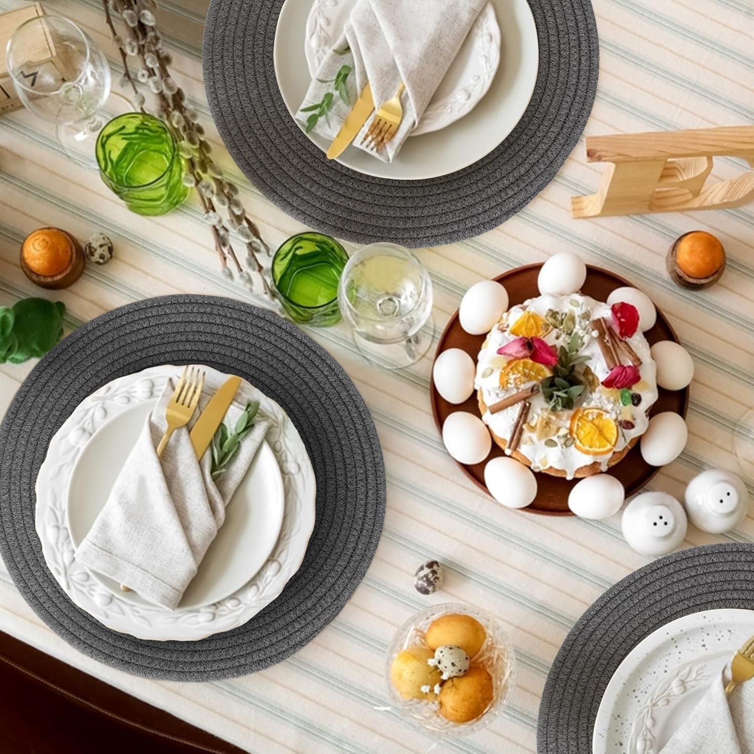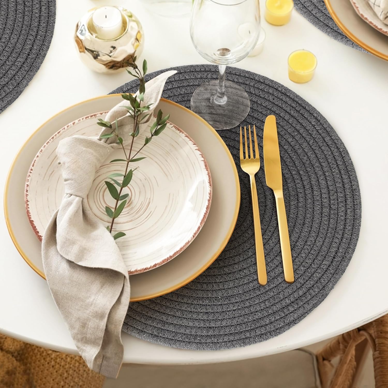 Premium Material: Made from natural woven cotton rope, these neutral toned placemats are thick, durable, and resistant to fraying or losing shape. The sturdy design protects your table from heat damage while adding a farmhouse touch that complements both modern and rustic decor.