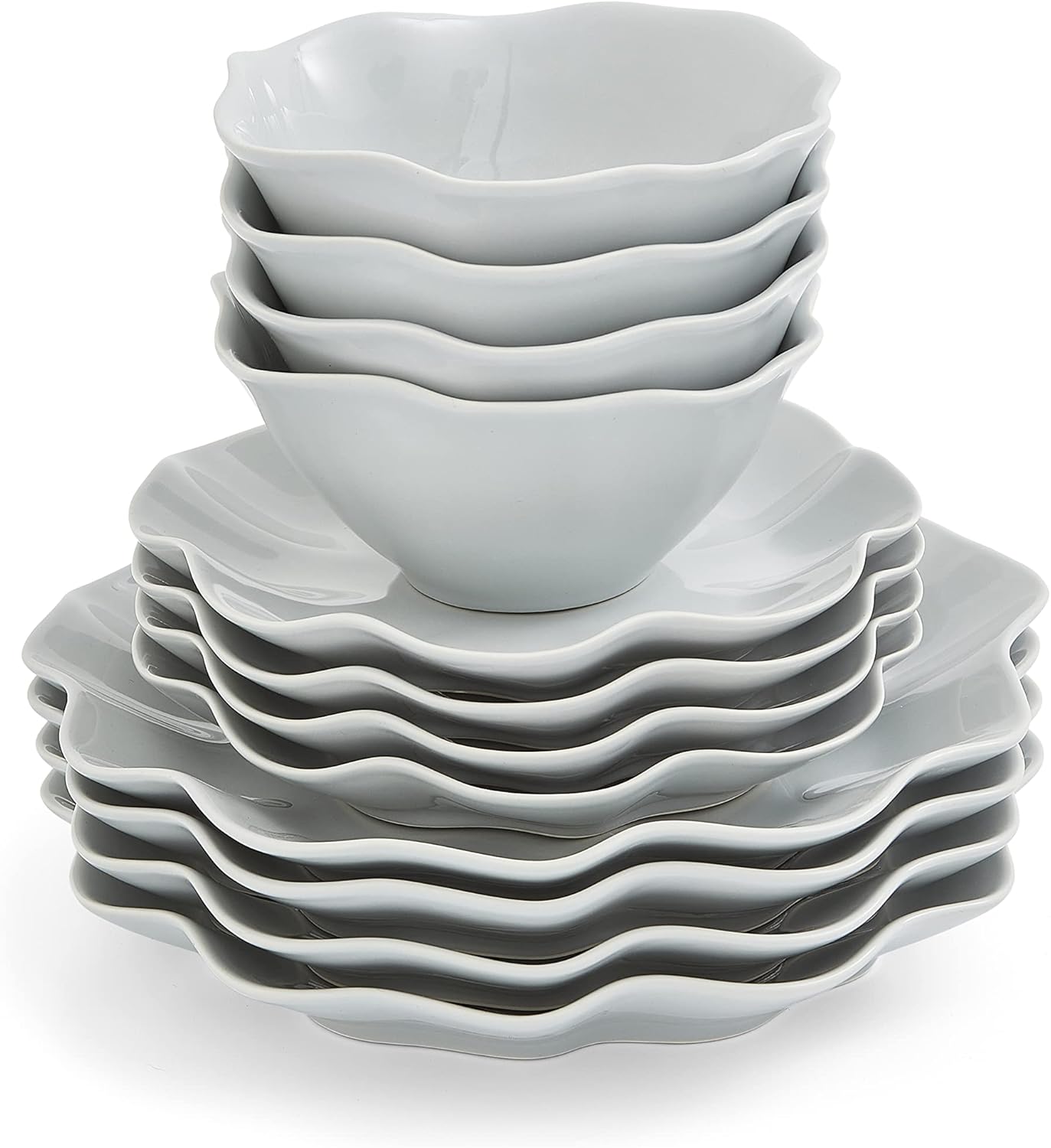 JUST WHAT YOU NEED: This elegant Sophie Conran for Portmeirion 12-piece Floret dinnerware will add a beautiful, visual element to your dinner table – making every meal feel just that little bit more special. Featuring 4 of each dinner plate, salad plate and all-purpose bowl, each piece is softly fluted capturing the natural elegance and beauty of a garden blossom. It also makes for a wonderful housewarming or wedding gift.