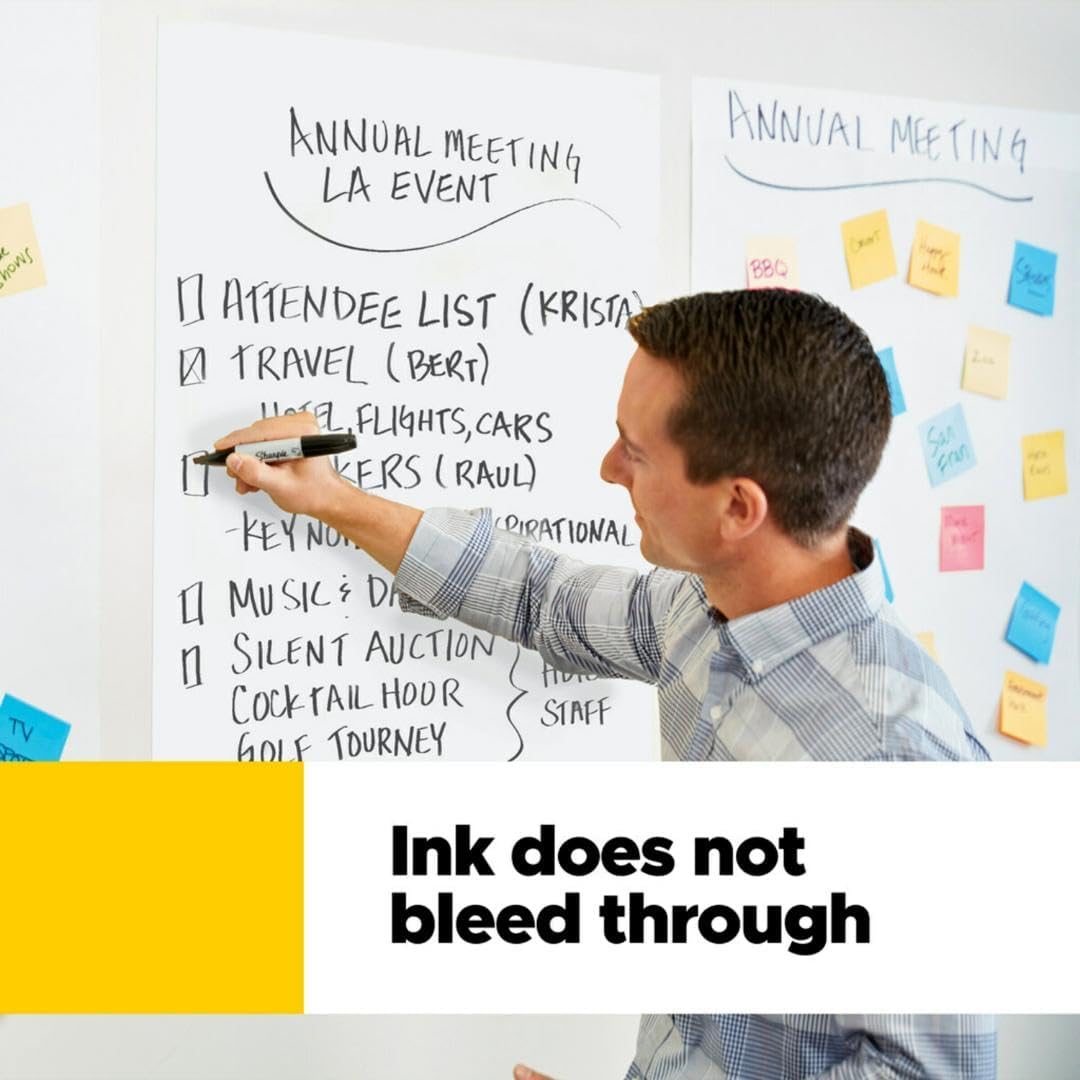 INK BLEED-THROUGH RESISTANT PAPER – Large white premium self-stick flip chart paper that resists marker bleed-through to keep great ideas on the page, not on what’s under the page