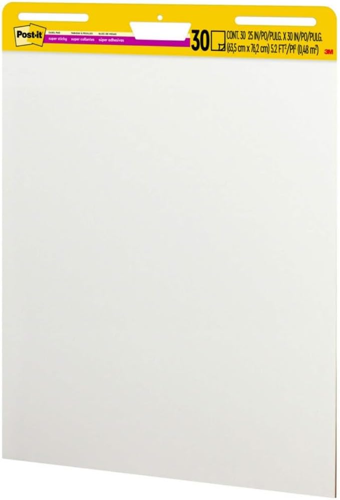 Post-it Super Sticky Easel Pad 25 in x 30 in White 30 Sheets/Pad 2 Pad/Pack Large White Premium Self Stick Flip Chart Paper Super Sticking Power (559)