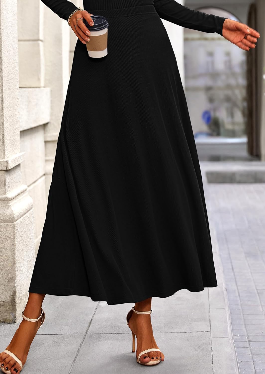 PRETTYGARDEN Women Fall Spring 2 Piece Outfits Dressy Casual Ribbed Knit Long Sleeve Crop Top Maxi Flowy Skirts Matching Sets