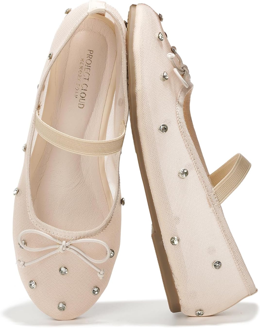 Project Cloud Ballet Flats Shoes for Women – Crystal-Embellished Mesh Ballet Flats Women Footwear – Non-Slip Mary Jane Shoes with Memory Foam – Casual Footwear for All-Day Comfort (Amity)