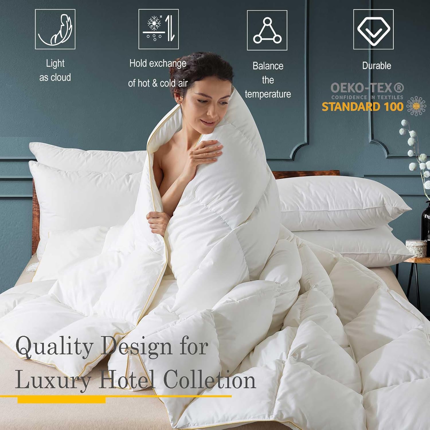 Combine breathability lightness and warmth together perfectly, this is our quality Feather-down fiber comforter who can do it.