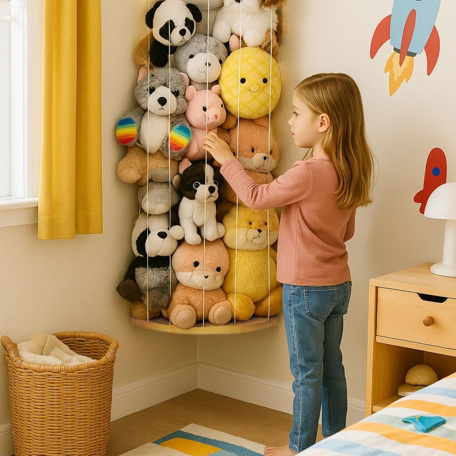 PUTSKA Nursery Furniture Hanging Organizer – Wall Mounted Stuffed Animal Storage for Baby Room, Corner Plush Collection Display & Nursery Organization System, Space-Saving Vertical Storage – Plain