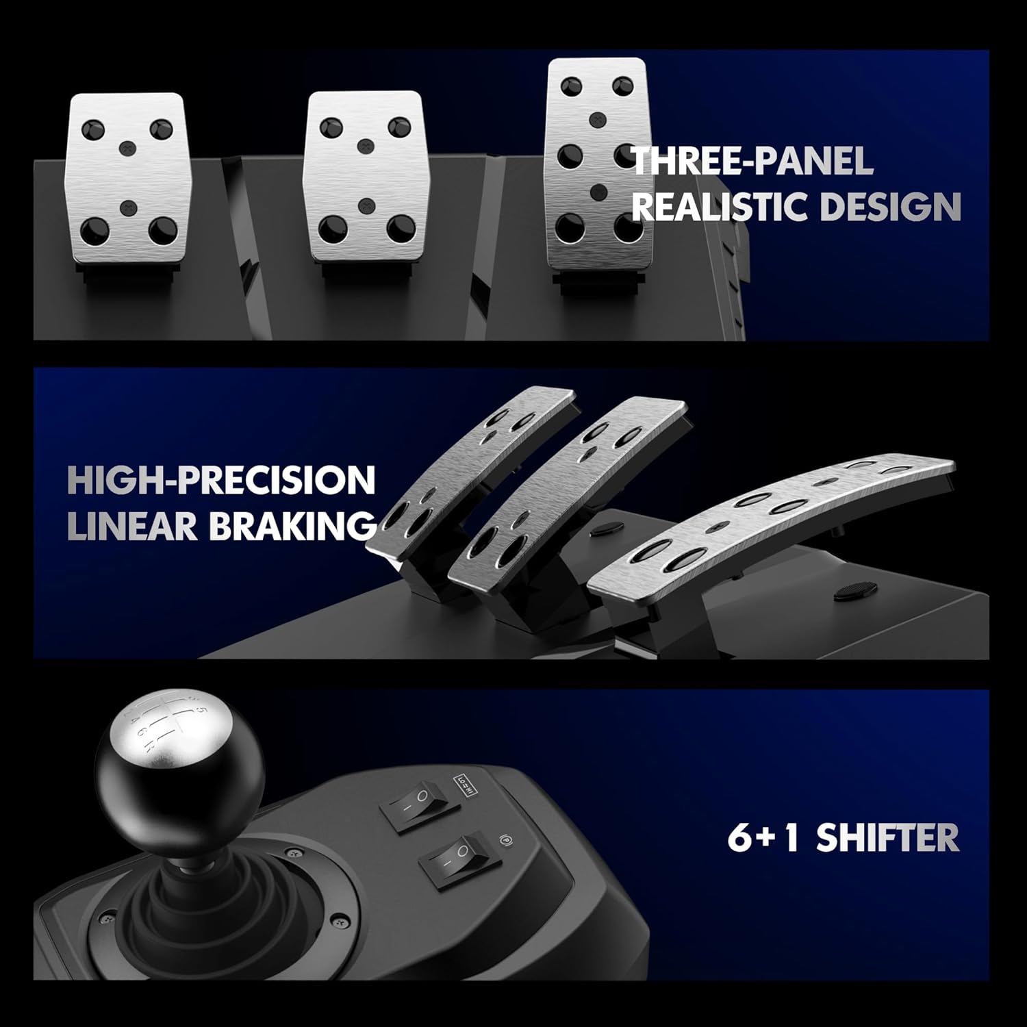 ✅【DUAL MODE RACING WHEEL】:Experience seamless mode switching with our PC Dual Analog Steering Wheel! 270/900° rotation, sports car-style paddles, and manual gear shifting, all designed for ergonomic comfort and immersive gameplay. With smart dual-core technology, switch between X input and D input modes effortlessly. simply switch to D-input mode by holding the “MODE” key until the red light flashes. Enjoy precise control with the 3-in-1 linear pedal for clutch, brake, and accelerator functions.