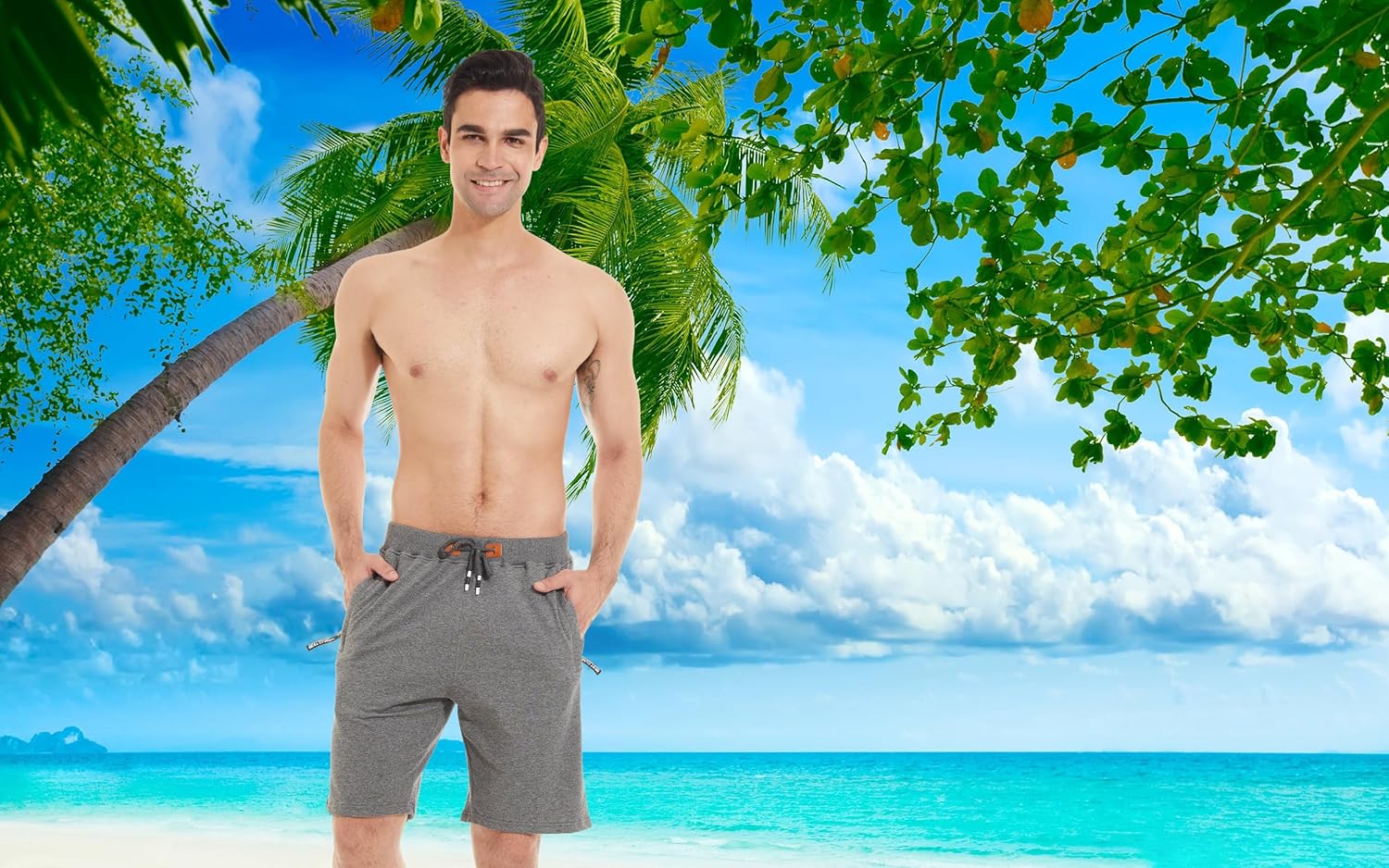 QPNGRP Mens Shorts Casual Drawstring Zipper Pockets Elastic Waist