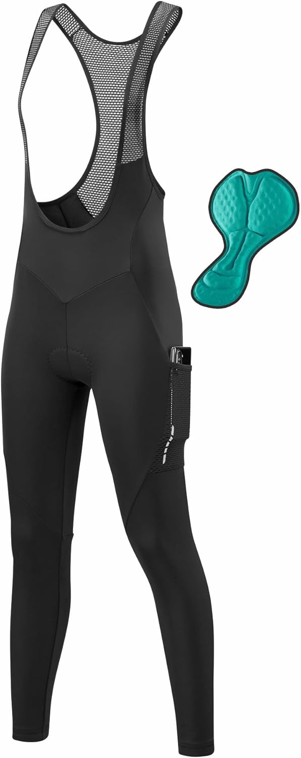qualidyne Women’s Thermal Fleece 4D Padded Cycling Bib Tights with Pockets, Ankle Zips, Full-Length for Cold Weather