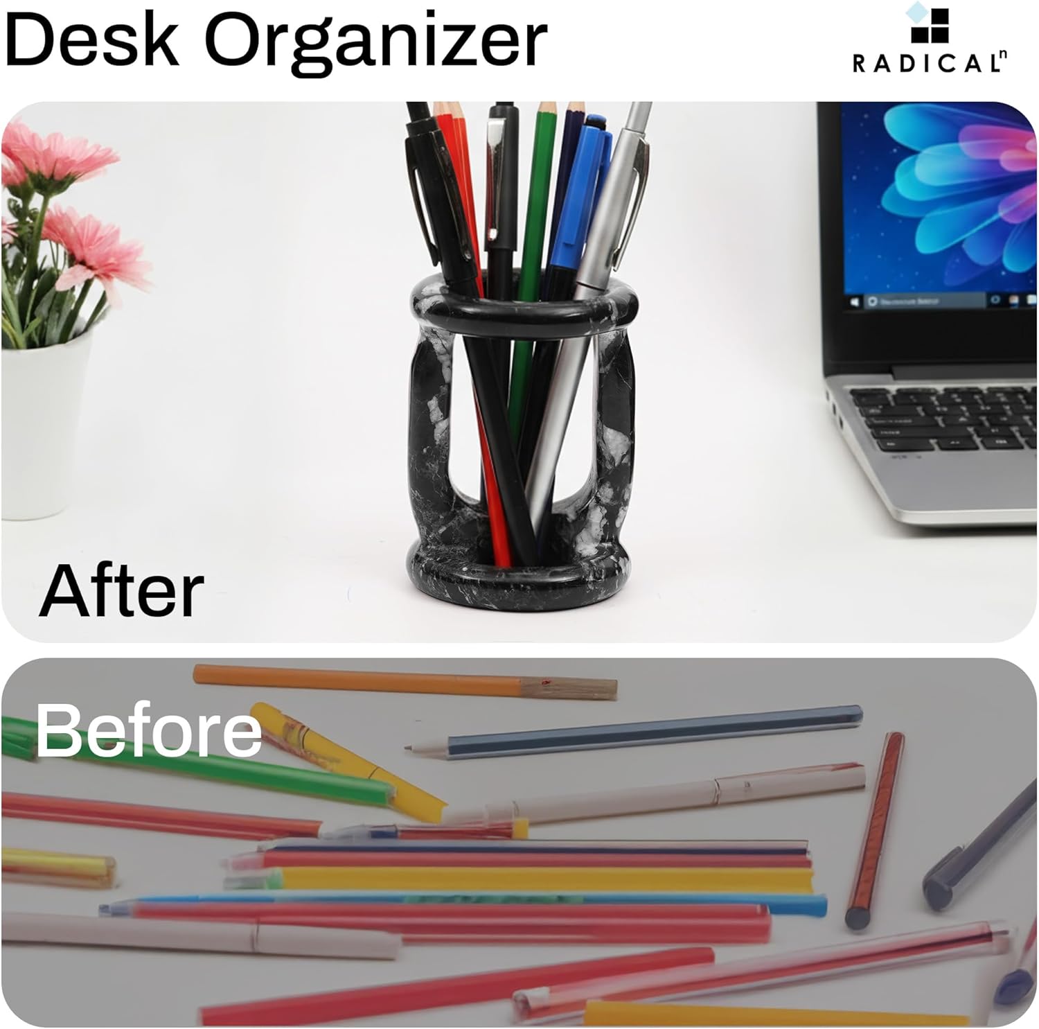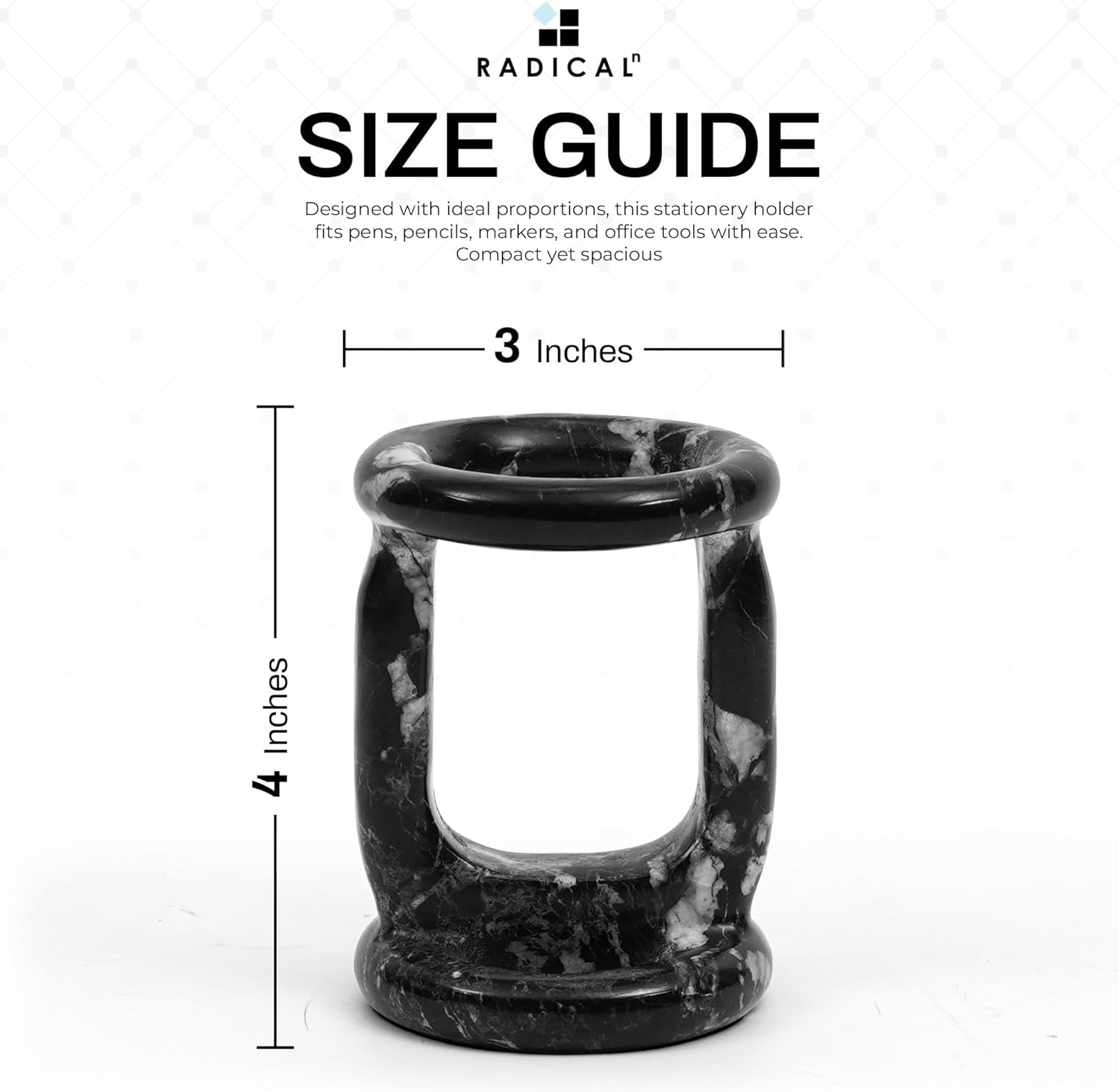 Radicaln Marble Pen Holder Black Zebra 4″ Inches Handmade Pencil Holder for Desk, Ideal for School Stationery, Office, Desk & Makeup Accessories