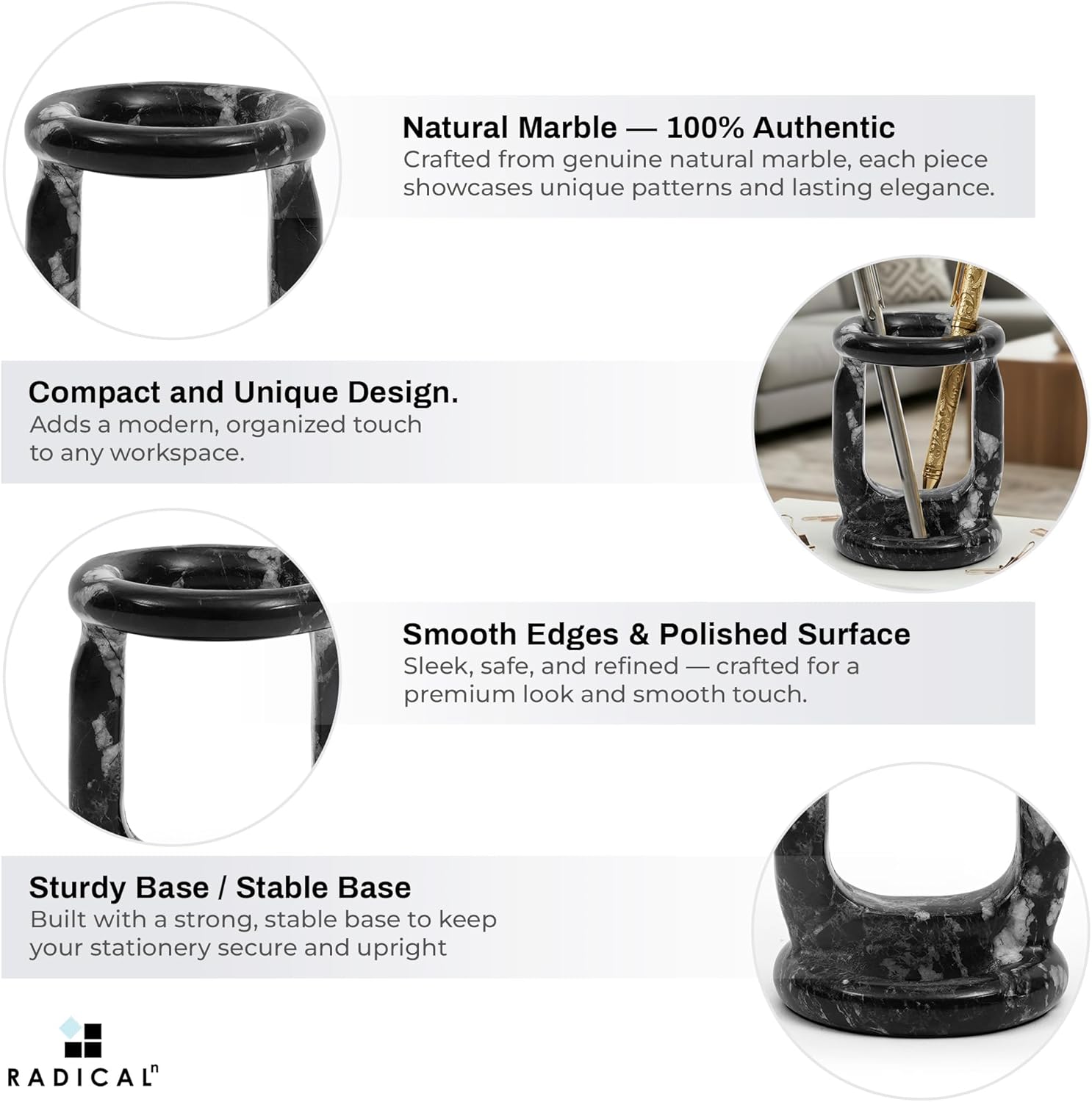 Durable & Sturdy – Made from high-quality, natural marble to ensure long-lasting durability and a timeless design that complements any office or home decor.