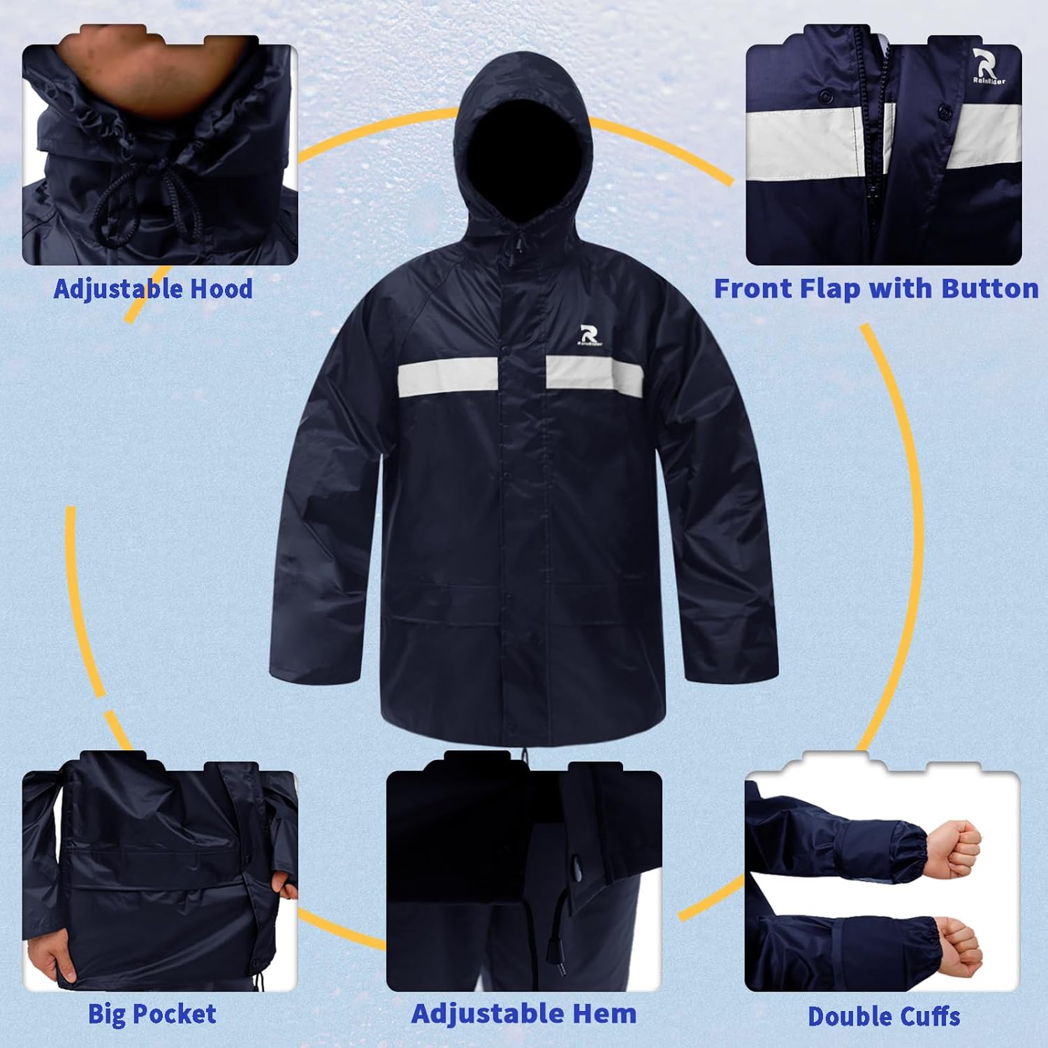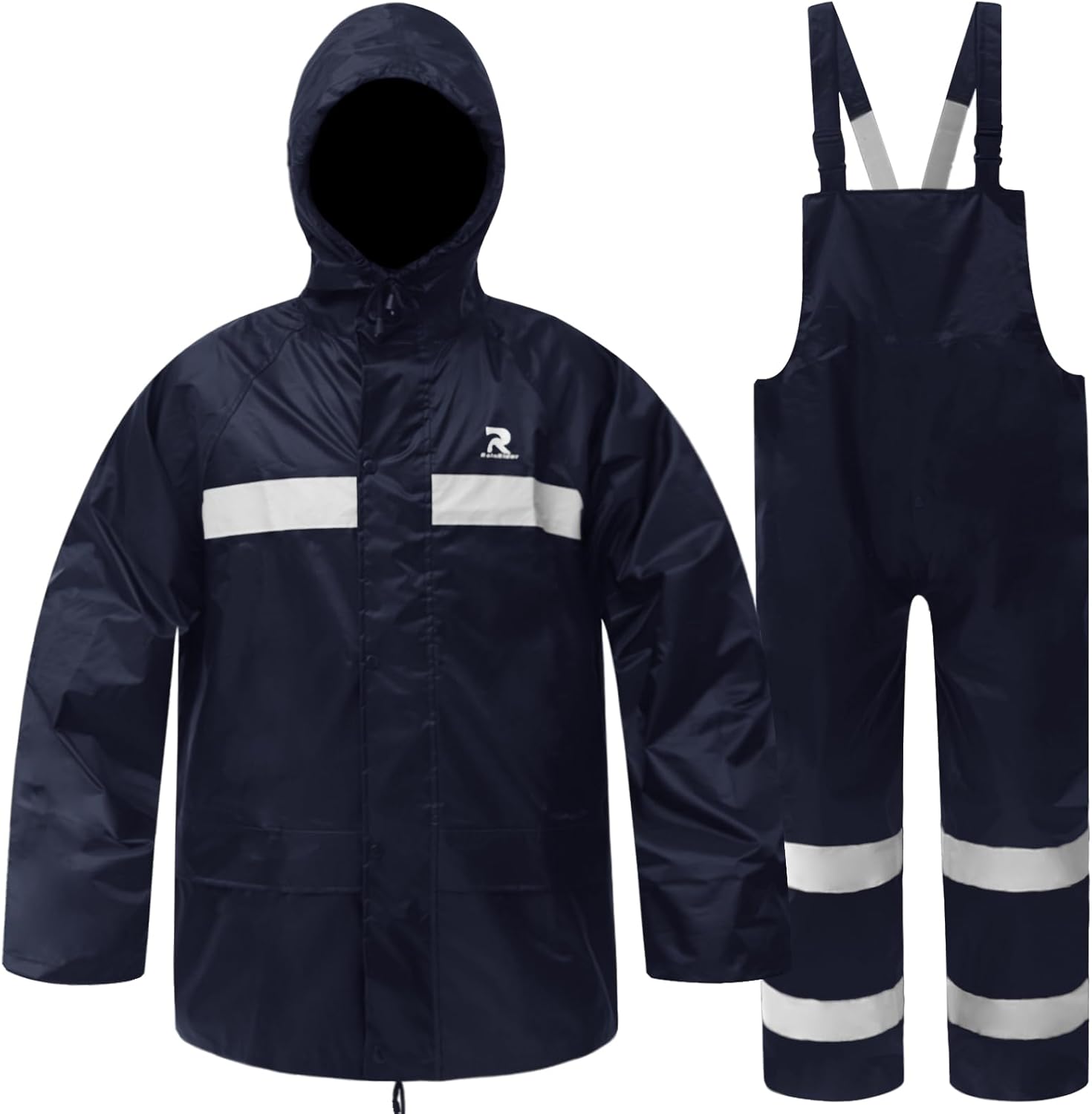 RainRider Rain Suits for Men Women Waterproof Fishing Rain Jacket Bib Pants Lightweight Reflective 3-Piece Rain Gear