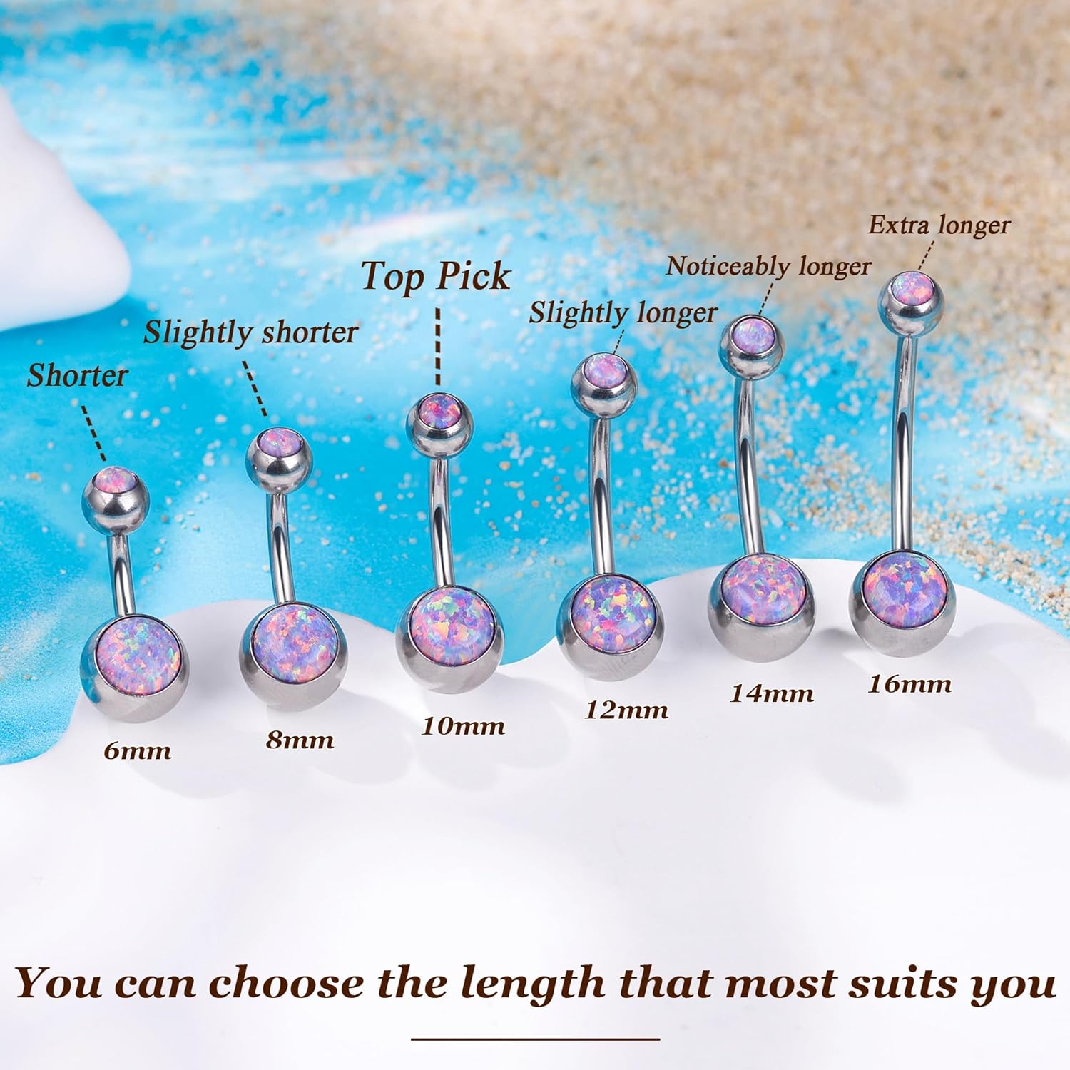 REVOLIA 14G F136 Titanium Opal Belly Button Rings for Women Hypoallergenic Belly Rings Internally Threaded Barbell Navel Rings Body Piercing Jewelry 6-16MM