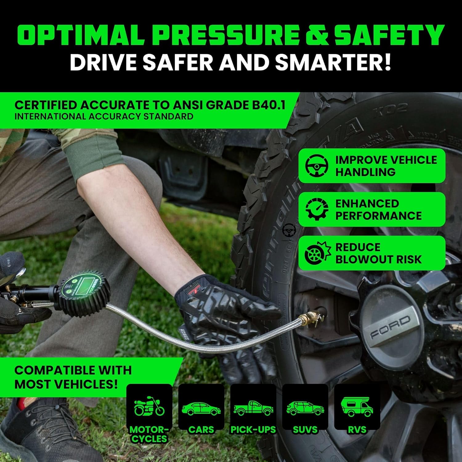 TIME & MONEY SAVER – Keeping Your tires properly inflated helps reduce fuel consumption, saving you money at the pump. It also extends tire lifespan, improving handling, performance, and safety, while preventing premature wear and costly repairs down the road.