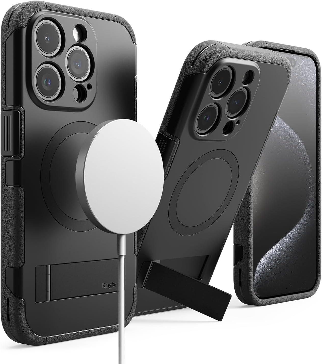 Ringke Alles [Compatible with Magsafe] Designed for iPhone 15 Pro Max Case, Protective Case with Stand Powerful Magnetic Cover Precise Cutouts for Camera Lenses – Black