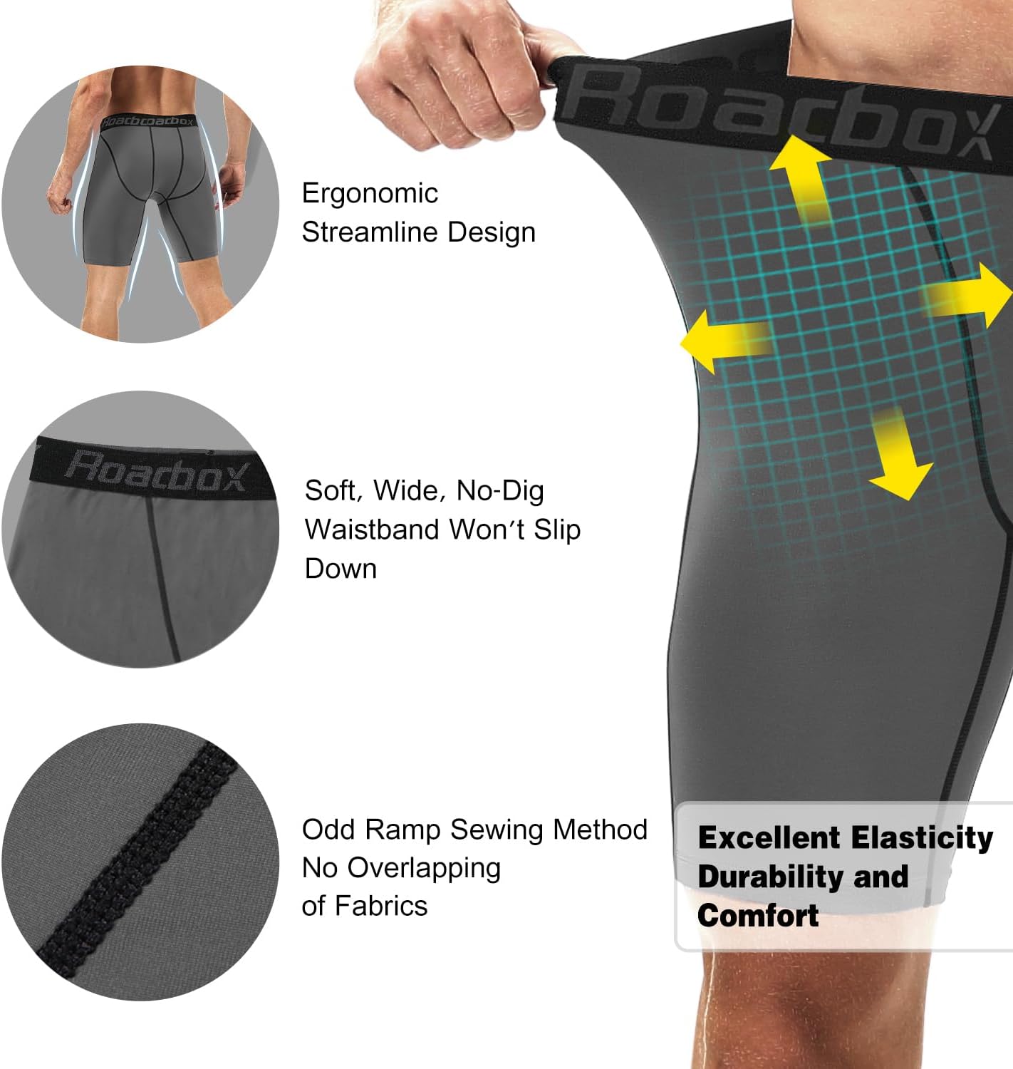 Roadbox 1 or 2 Pack Compression Shorts for Men, Athletic Workout Performance Underwear, Running Gym Spandex Sport Base Layer