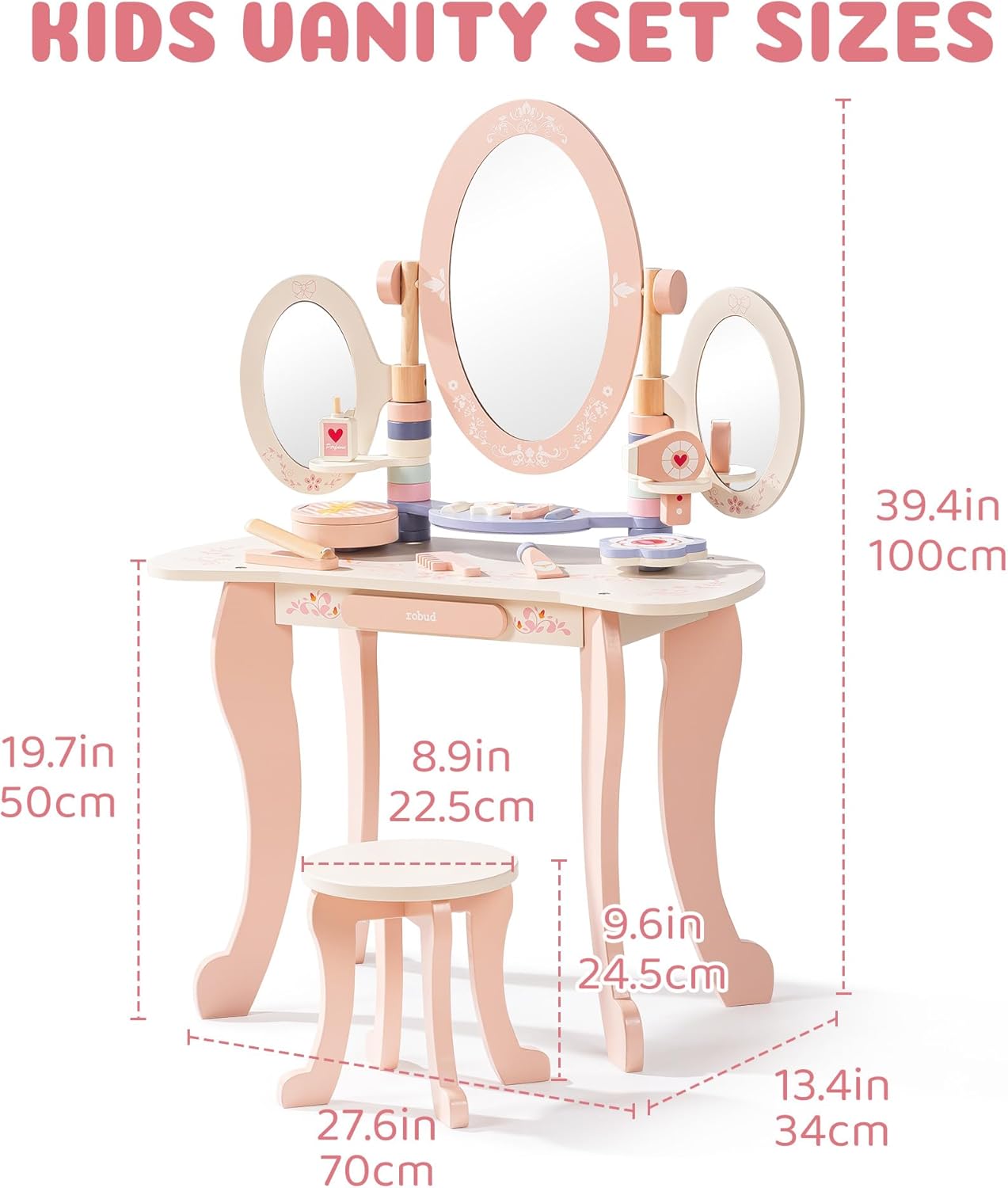 PREMIUM QUALITY & SAFETY: Dressing table is made of high quality solid wood with sturdy construction and smooth edges for year-round use. The product is equipped with an anti-tipping device and can be mounted on the wall to ensure the safety of children while playing.