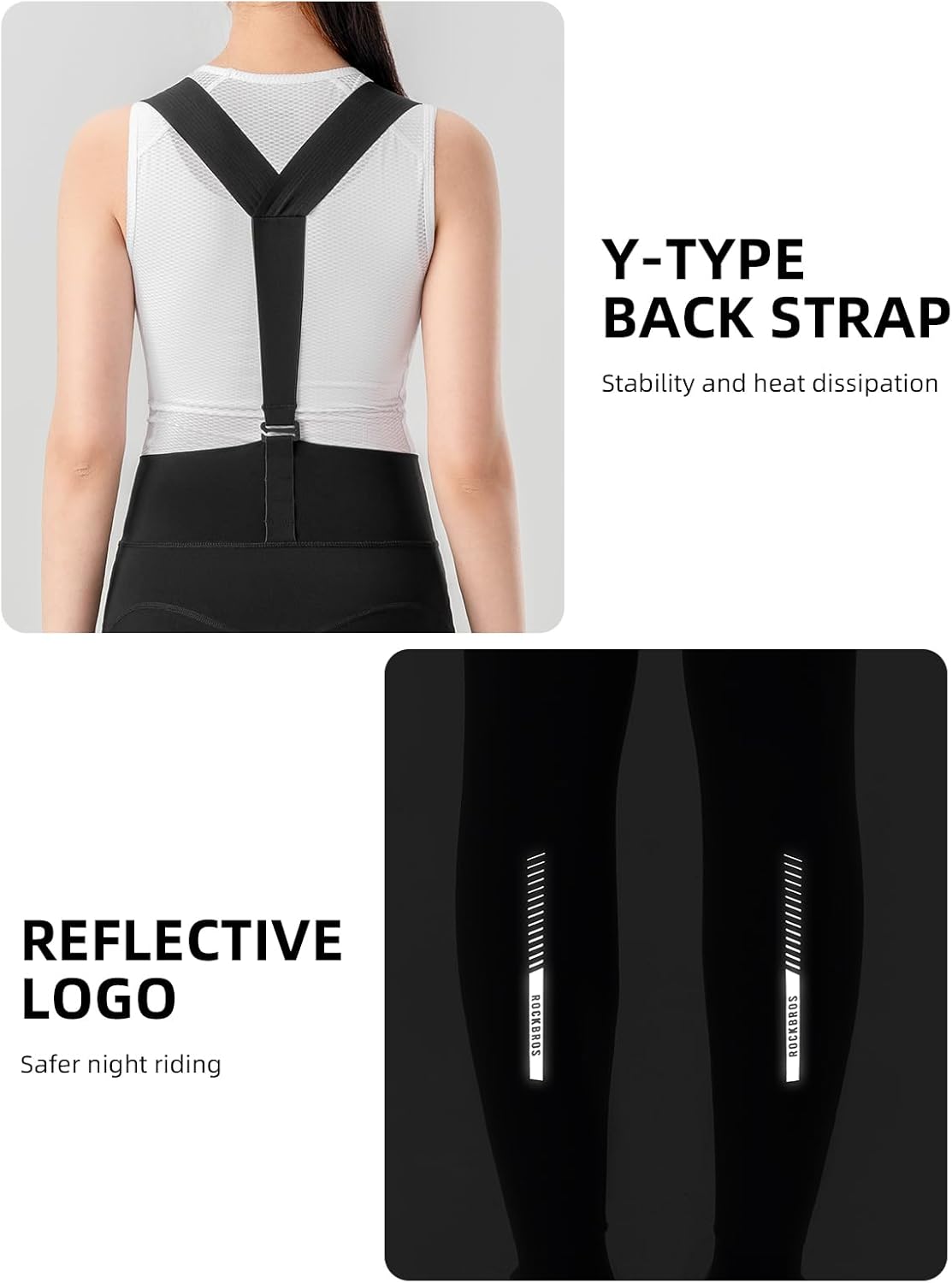 ROCKBROS Cycling Bibs Women with Removable Straps 3D Breathable Padded Bike Pants with Pockets Stretch Tight Cycling Pants