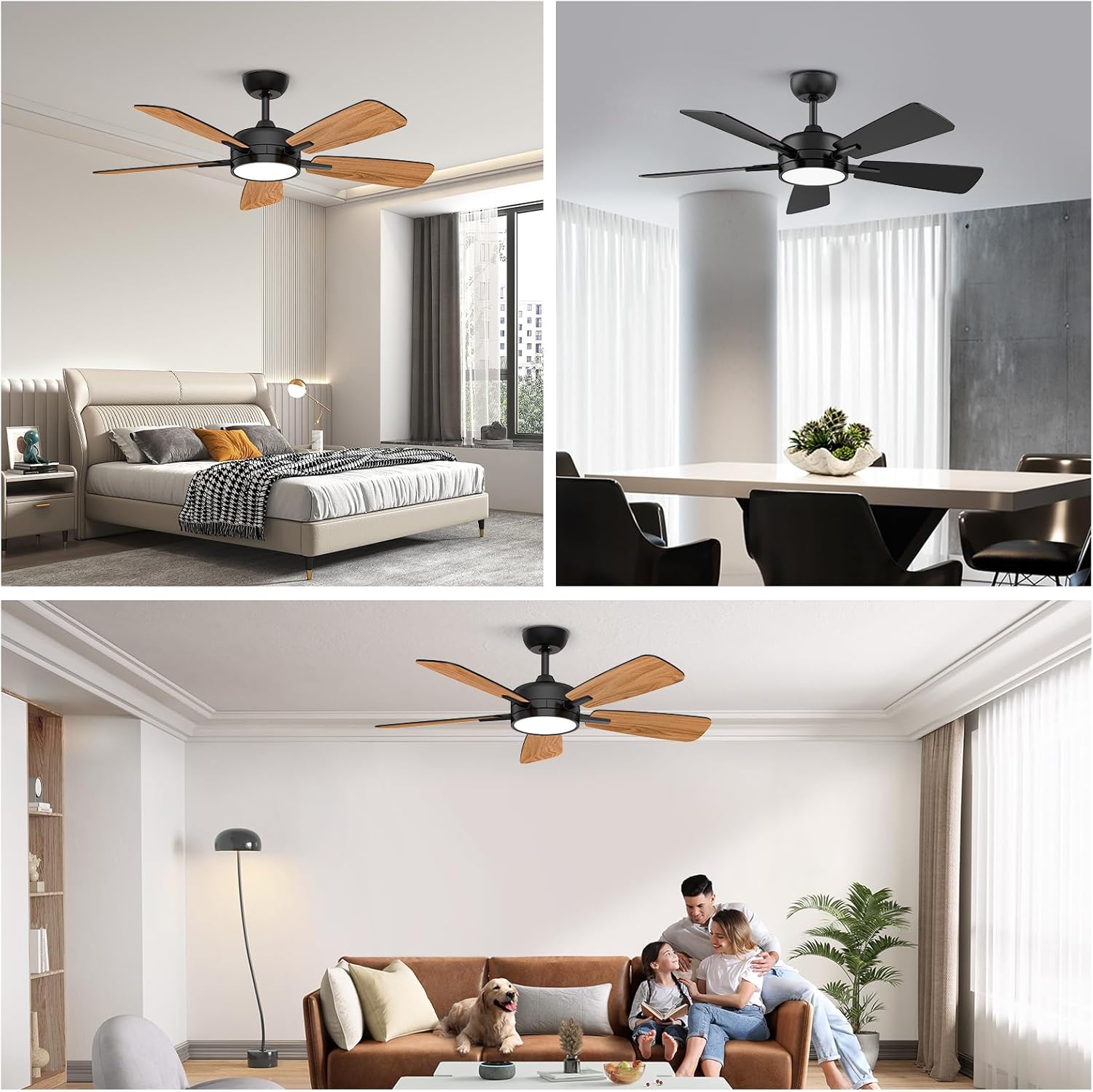 Reversible DC Motor:In the hot summer months, the fan rotates counterclockwise to bring a cool breeze. In the cold winter, when the fan rotates clockwise, it pushes warm air upwards, helping to circulate heat evenly from the ceiling throughout the room