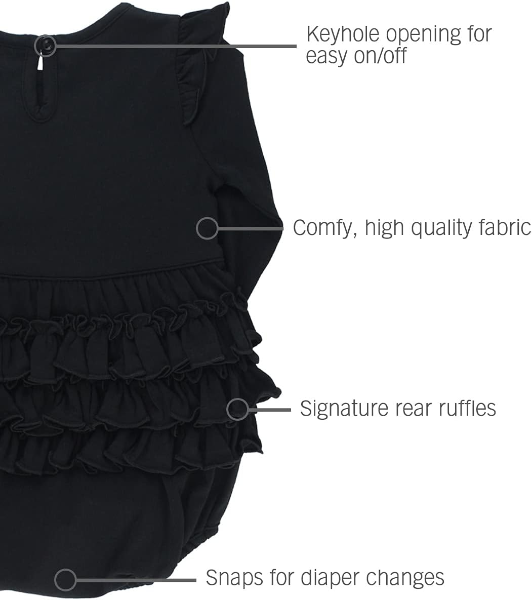 RuffleButts Baby/Toddler Girls Black Flutter Bubble Romper – 0-3m
