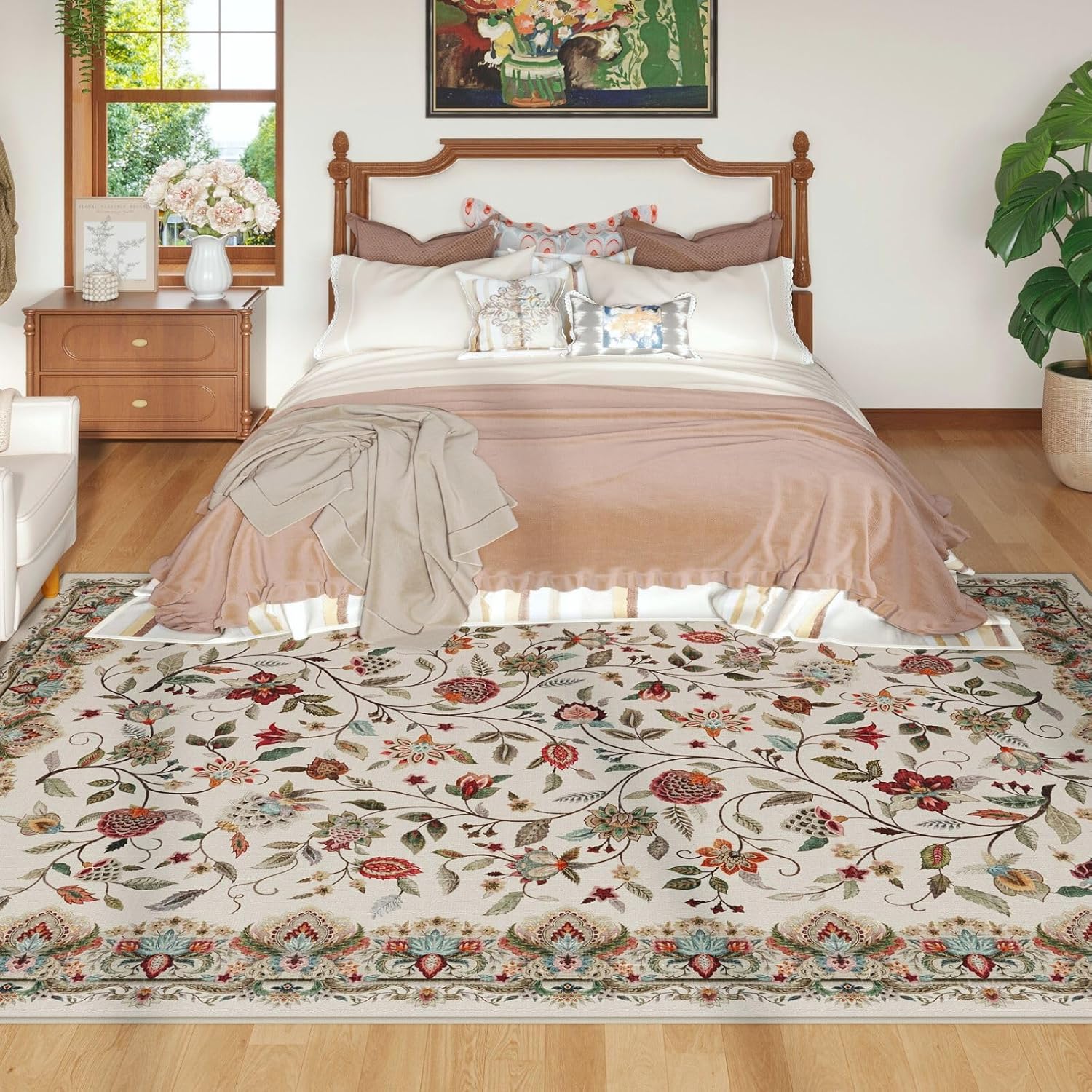 Rugcomf Vintage Paisley Rugs for Living Room 8’x10′ – Machine Washable Area Rug, Non-Slip Low Pile Large Floral Carpet for Bedroom, Dining Room, Farmhouse, Office, Kids Playroom – Beige