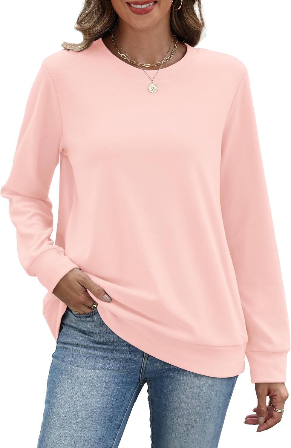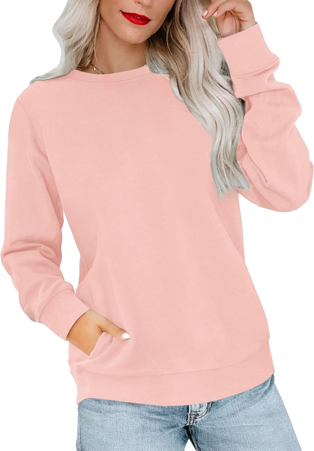 RUMIA Crewneck Fall Sweatshirts for Women Trendy- Women’s Plain Long Sleeve Pullover Tops with Pockets Fashion