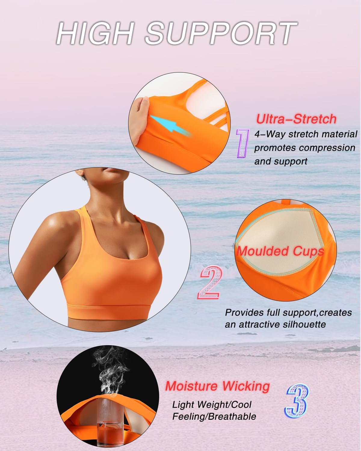 RUNNING GIRL High Impact Sports Bras for Women – Scoop Neck Strappy Sports Bra High Support Moulded Cup Workout Bra