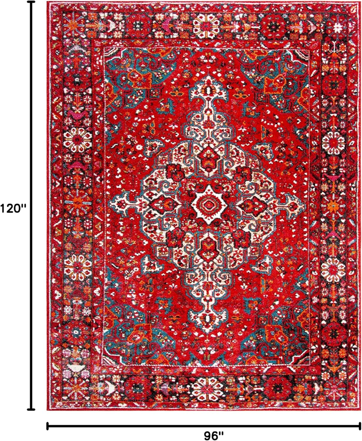 SAFAVIEH Vintage Hamadan Collection Area Rug – 8′ x 10′, Red & Multi, Oriental Traditional Persian Design, Non-Shedding & Easy Care, Ideal for High Traffic Areas in Living Room, Bedroom (VTH222A)