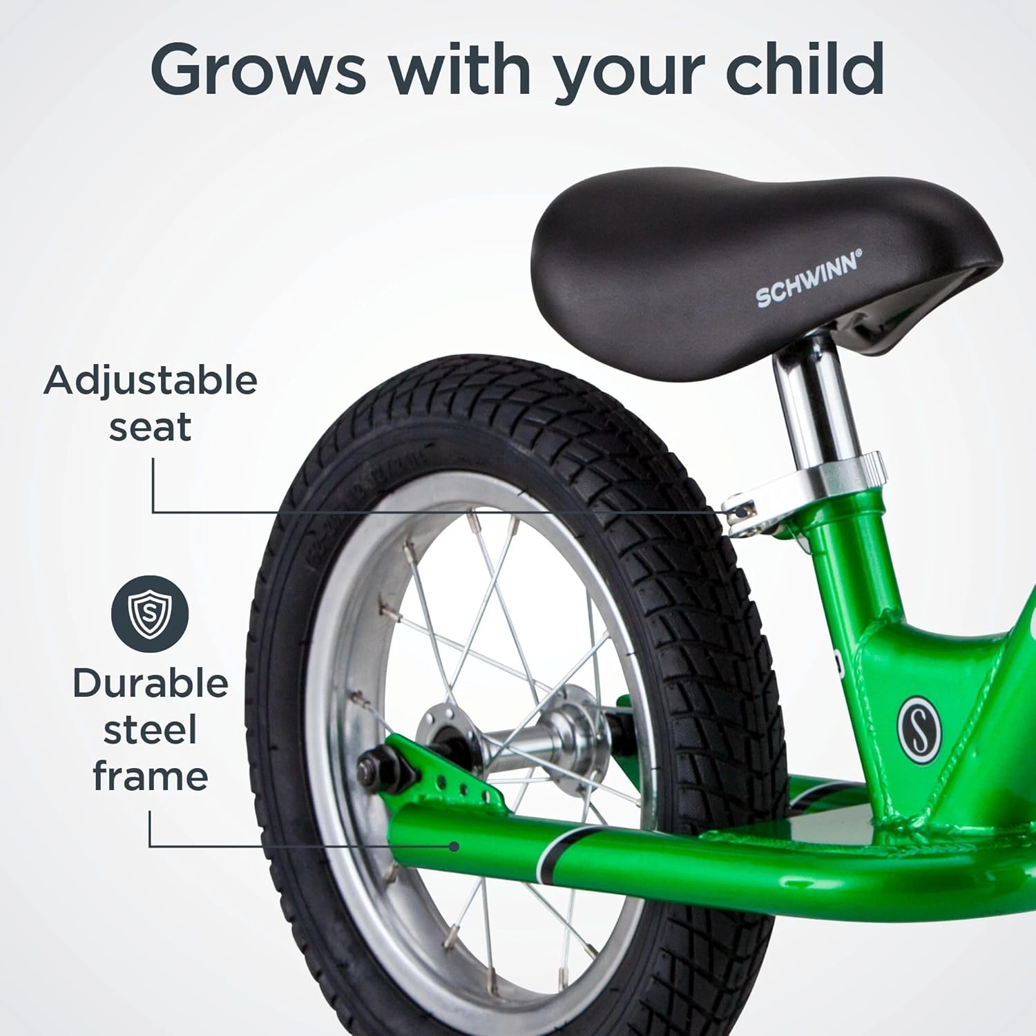 Schwinn Balance Bike, 12 Inch Bike for Kids Ages 2-4, Durable Steel Frame, Padded Seat, Cushioned Grips, Adjustable Seat Grows with Your Child, No Training Wheels Needed, Training Bicycle for Kids