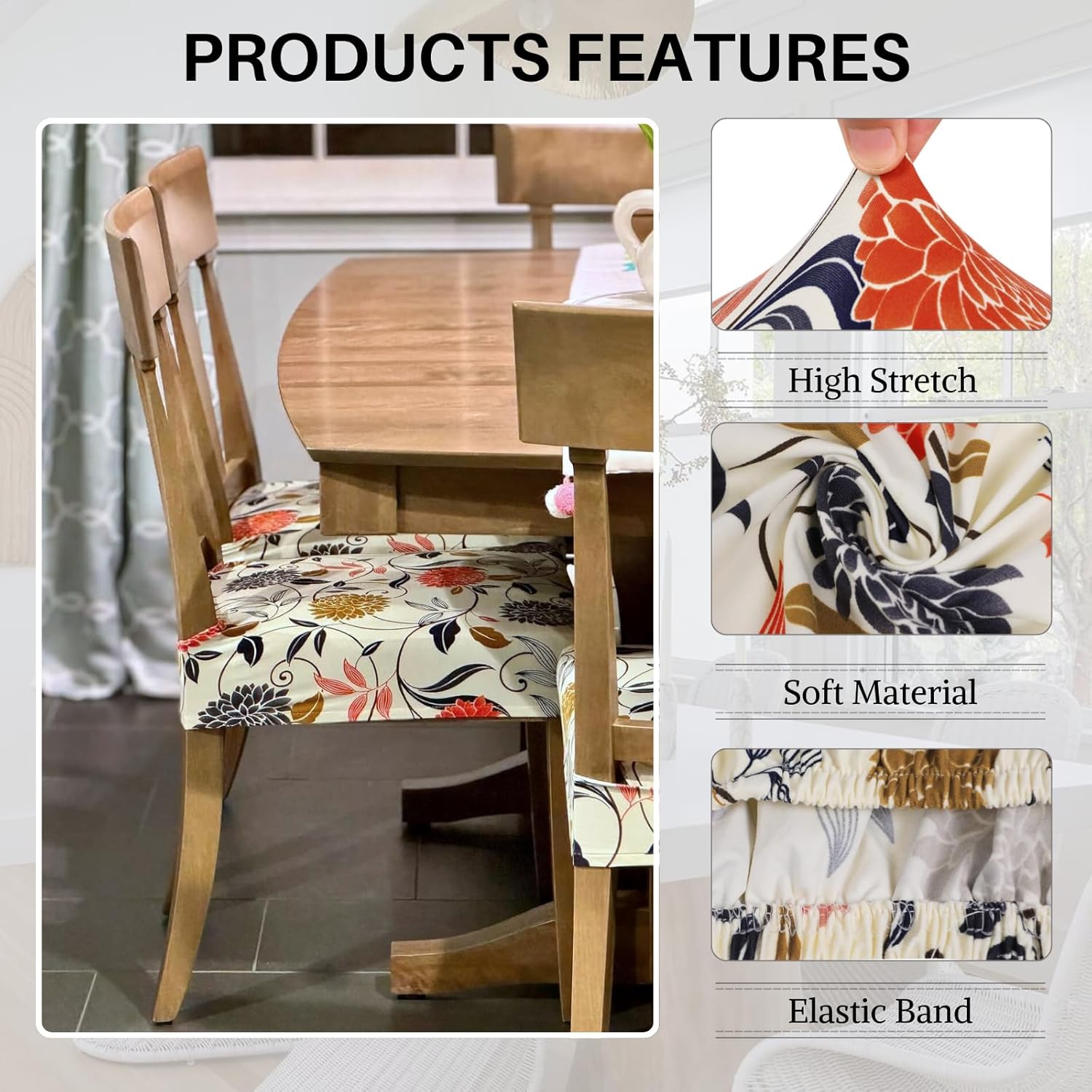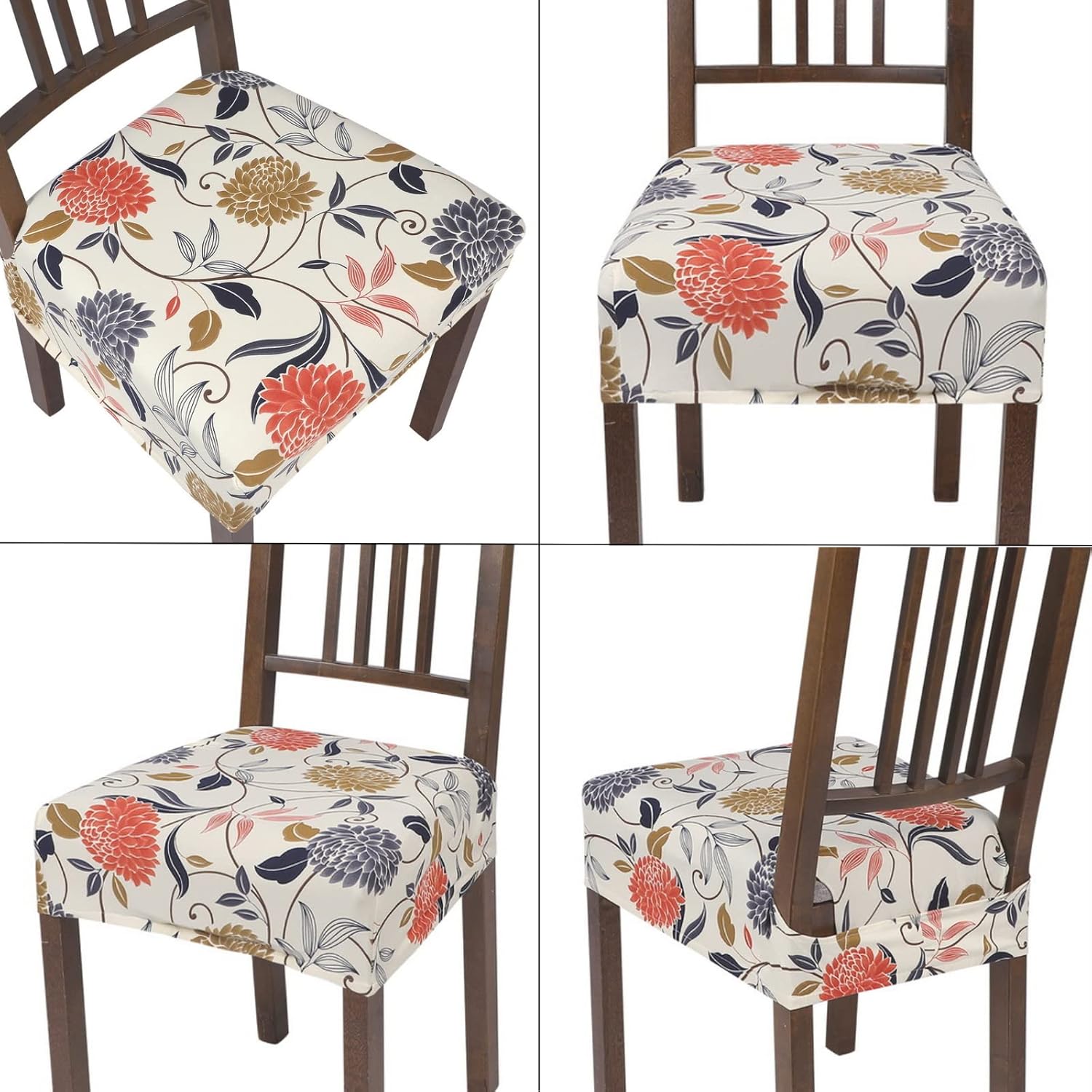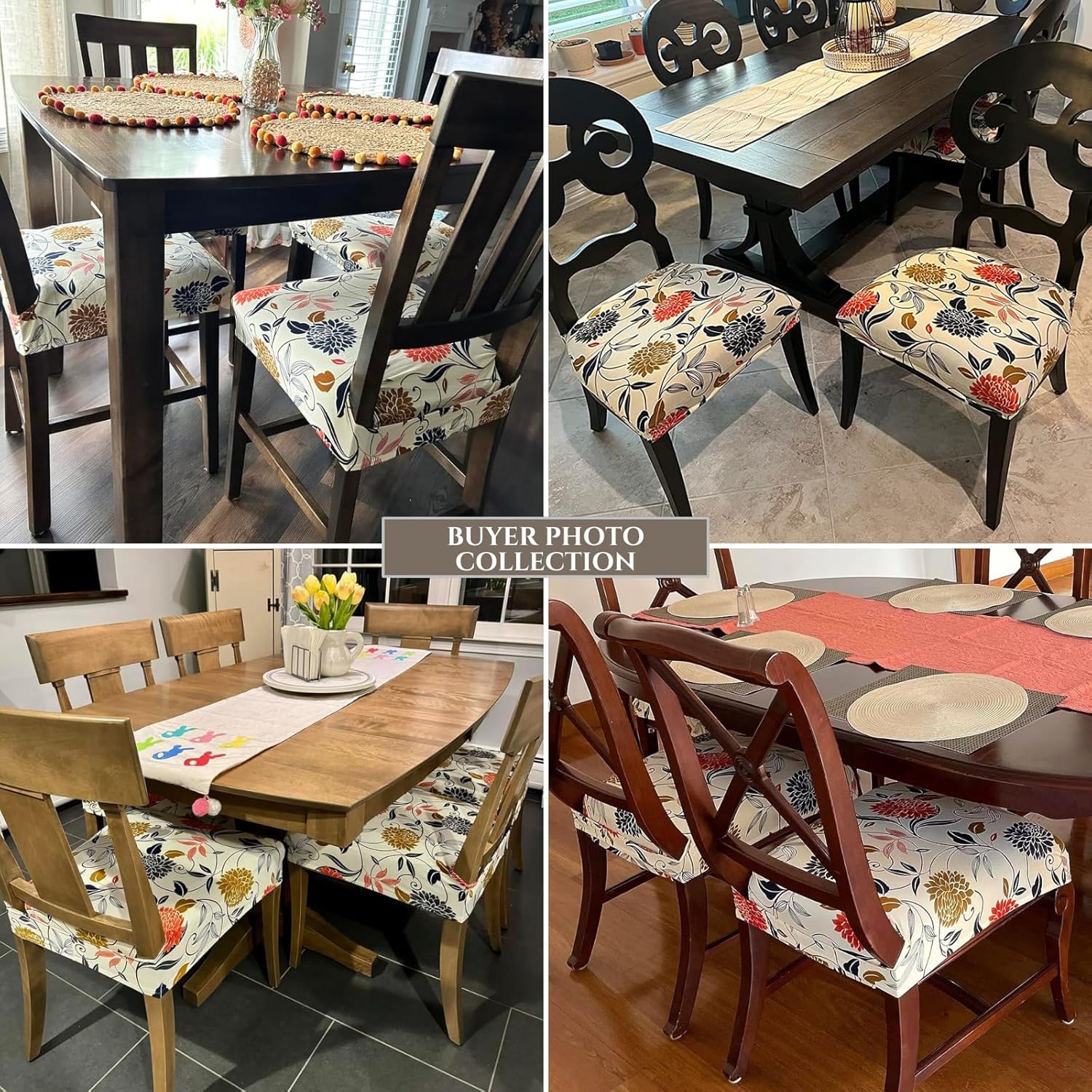 SearchI Stretch Dining Chair Seat Covers Set of 6, Soft Removable Washable Seat Covers for Dining Chairs, Dining Room Seat Cover Protector (Rear-Covered, Orange Flowers)
