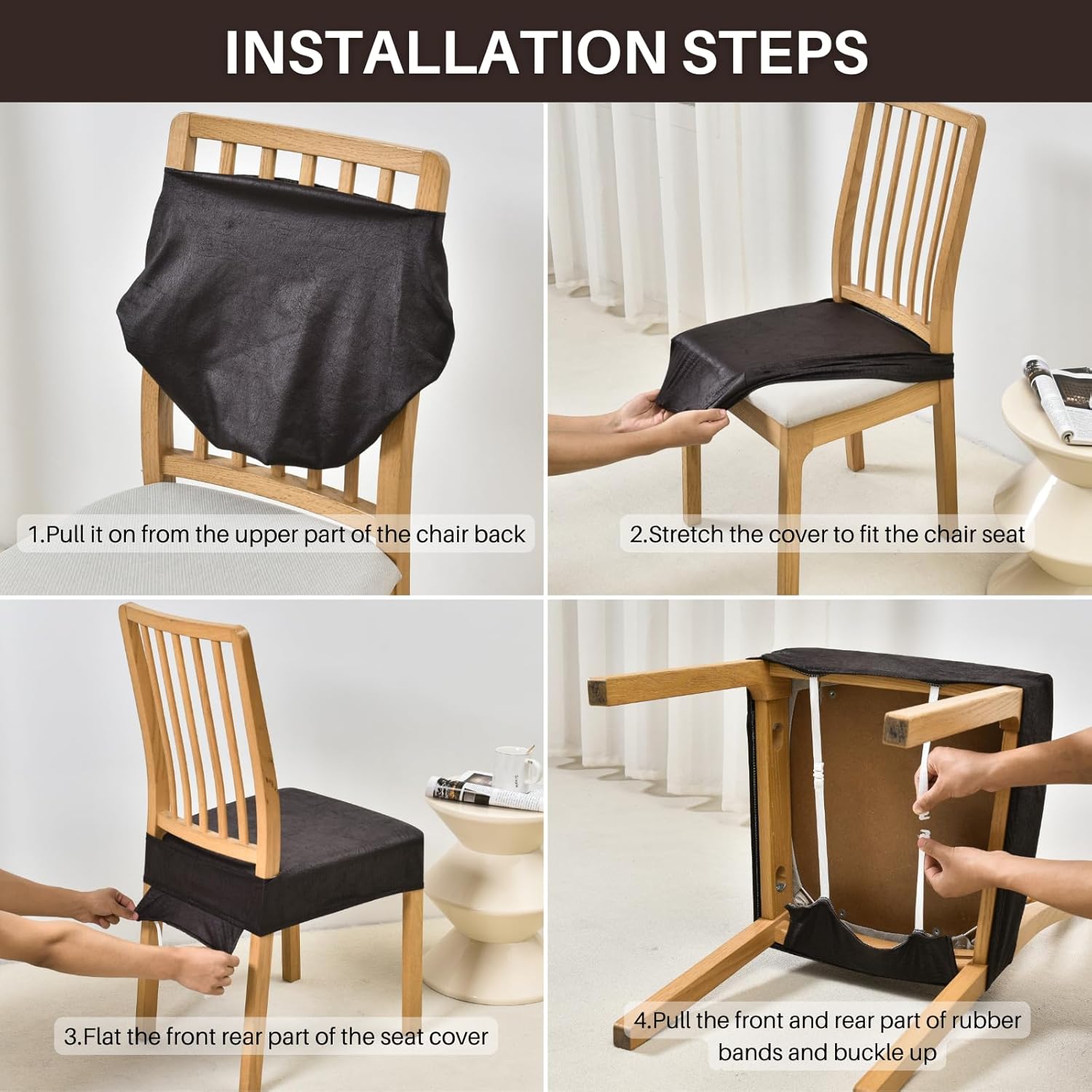 [Widely Use & Care]dining room chair seat covers are great for upholstered chairs in various occasions. They are suitable for dining room, hotel, kitchen, restaurant, banquet, meeting, dinner, ceremony, etc. Just wash in cold water and gentle cycle, tumble dry low, do not iron and bleach.